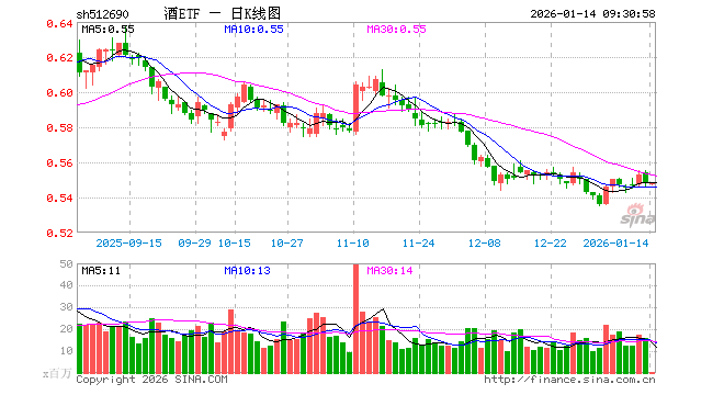 1月14日,酒ETF(512690)开盘跌0.18%,报0.547元。酒ETF(512690)重仓股方面,贵州茅台开盘涨0.00%,五粮液跌0.11%,泸州老窖跌0.66%,山西汾酒跌0.08%,洋河股份跌0.39%,今世缘涨0.06%,古井贡酒跌0.16%,青岛啤酒跌0.05%,燕京啤酒跌0.50%,酒鬼酒涨0.05%。