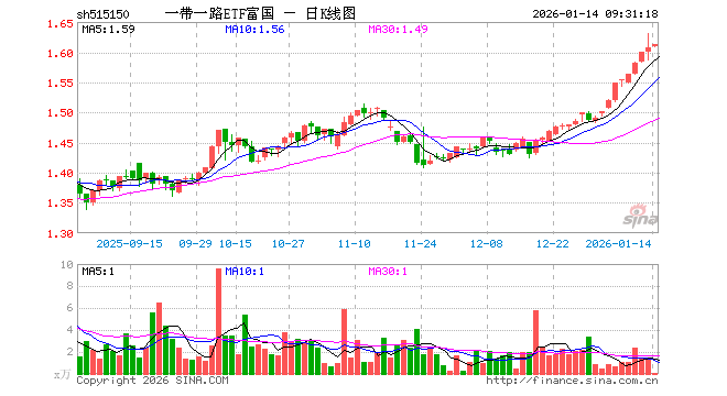 1月14日,一带一路ETF富国(515150)开盘涨0.06%,报1.609元。一带一路ETF富国(515150)重仓股方面,平高电气开盘涨0.15%,山东黄金涨1.15%,紫金矿业涨0.97%,中远海控涨0.13%,广东宏大涨0.20%,中国铝业涨0.93%,小商品城涨1.20%,中远海发涨0.00%,中海油服涨1.37%,云铝股份涨0.96%。