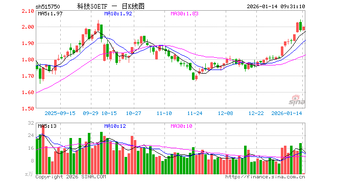 1月14日,科技50ETF(515750)开盘涨0.00%,报1.977元。科技50ETF(515750)重仓股方面,立讯精密开盘跌0.70%,阳光电源跌0.40%,亿纬锂能涨0.05%,歌尔股份涨0.69%,宁德时代涨0.29%,长川科技涨0.83%,烽火通信涨3.52%,寒武纪涨0.85%,领益智造跌0.53%,鹏鼎控股涨0.94%。