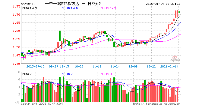 一带一路ETF易方达(515110)业绩比较基准为中证国企一带一路指数收益率,管理人为易方达基金管理有限公司,基金经理为刘树荣,成立(2019-11-06)以来回报为70.12%,近一个月回报为10.75%。