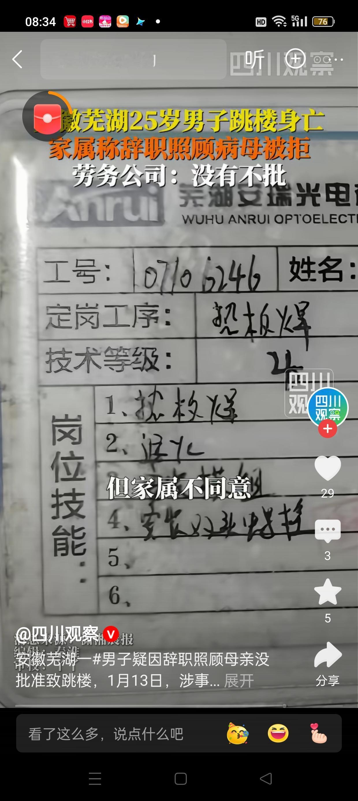 安徽芜湖25岁工人坠楼身亡:请假照顾母亲遭拒,背后隐藏的职场压力与家庭困境引发关注 近日,安徽芜湖发生了一起令人痛心的事件,一名年仅25岁的工人在工作岗位上不幸坠楼身亡。令人扼腕叹息的是,事发前不久,他曾向公司提出请假,理由是需要照顾年迈的母亲,但被公司拒绝。据家属透露,工人因家庭责任压力巨大,心情沉重,最终选择了极端方式结束生命。这一事件不仅引发了公众对职场人文关怀的关注,也让社会再次聚焦于劳动者的权益保障和家庭责任的矛盾。 事件经过:家庭与工作的双重压力 据家属介绍,工人工作勤奋,但家庭负担沉重。母亲年迈需要照料,工人希望请假陪伴和照顾母亲,但多次向公司提出请求未获批准。家属质疑,工人在情绪低落的情况下,可能感受到极大的压力与无助,最终选择了极端的方式。公司方面则回应称,“没有不批准的情况”,强调员工的请假请求都已按照程序处理,事件的具体原因还需进一步调查。 职场关怀:员工权益与企业责任的平衡 这起事件折射出当前职场中普遍存在的“压力与关怀”的矛盾。一方面,企业追求效率和业绩,员工的请假请求常被视为影响工作进度的因素;另一方面,员工作为企业宝贵的资源,也应享有合理的休息和家庭照顾的权利。尤其是在当今社会,家庭责任与工作压力的双重挑战,使得员工的心理健康成为不可忽视的问题。 近年来,心理健康问题在职场中的关注度不断提升。压力过大、家庭困境、孤独感等都可能成为导致极端行为的诱因。企业应建立完善的心理健康支持体系,为员工提供心理咨询、压力管理等服务,帮助他们应对生活与工作的双重挑战。 此次事件也提醒我们,社会应加强对劳动者特别是家庭困难群体的关注。完善劳动保障制度,确保员工在家庭困难时能获得合理的支持和照顾,是企业和社会共同的责任。政府应加强对企业的监管,确保劳动者权益得到切实保障。 每一个生命都值得尊重与珍惜。企业应以人为本,关注员工的身心健康,营造关爱、理解的工作氛围。家庭与工作的平衡不仅关乎个人幸福,也关系到社会的和谐发展。希望类似的悲剧不再重演,让每一位劳动者都能在工作中找到归属感与安全感。 愿逝者安息,也希望社会各界共同努力,为改善劳动环境、关爱员工家庭责任提供更多支持,让悲剧不再重演。