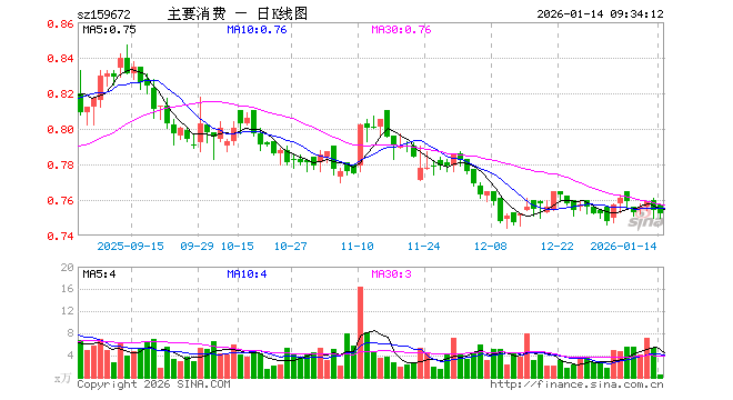 1月14日,主要消费ETF(159672)开盘涨0.40%,报0.757元。主要消费ETF(159672)重仓股方面,贵州茅台开盘涨0.00%,五粮液跌0.11%,牧原股份涨0.02%,伊利股份跌0.07%,温氏股份跌0.06%,泸州老窖跌0.66%,山西汾酒跌0.08%,海天味业跌0.08%,东鹏饮料跌0.34%,海大集团跌0.09%。