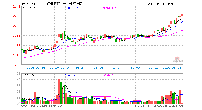 1月14日,有色矿业ETF招商(159690)开盘涨0.46%,报2.198元。有色矿业ETF招商(159690)重仓股方面,紫金矿业开盘涨0.97%,北方稀土跌0.61%,洛阳钼业涨0.22%,华友钴业跌0.47%,山东黄金涨1.15%,赣锋锂业跌1.12%,中国铝业涨0.93%,中金黄金涨1.33%,天齐锂业跌1.44%,赤峰黄金涨1.48%。