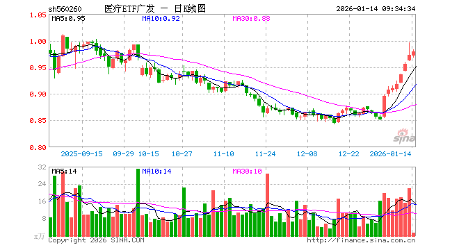 1月14日,医疗ETF广发(560260)开盘跌0.10%,报0.971元。医疗ETF广发(560260)重仓股方面,药明康德开盘跌0.05%,迈瑞医疗跌0.11%,联影医疗涨0.02%,爱尔眼科跌0.25%,康龙化成跌0.09%,泰格医药跌1.75%,爱美客跌0.41%,惠泰医疗跌0.82%,新产业跌0.17%,鱼跃医疗涨0.48%。
