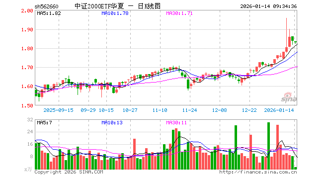 1月14日,中证2000ETF华夏(562660)开盘跌0.16%,报1.834元。中证2000ETF华夏(562660)重仓股方面,天奥电子开盘涨0.00%,国恩股份跌0.21%,亚太股份跌0.43%,宝胜股份跌1.95%,绿色动力涨0.29%,春秋电子涨0.32%,光电股份跌0.59%,麦克奥迪涨0.27%,杰普特跌0.13%,道恩股份跌0.32%。