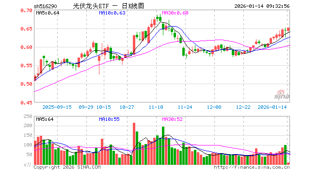 1月14日,光伏龙头ETF(516290)开盘跌0.16%,报0.642元。光伏龙头ETF(516290)重仓股方面,阳光电源开盘跌0.40%,隆基绿能跌0.38%,特变电工涨3.40%,TCL科技涨2.31%,通威股份涨0.98%,正泰电器涨0.00%,晶盛机电跌0.05%,TCL中环跌0.91%,德业股份跌0.44%,捷佳伟创涨0.36%。