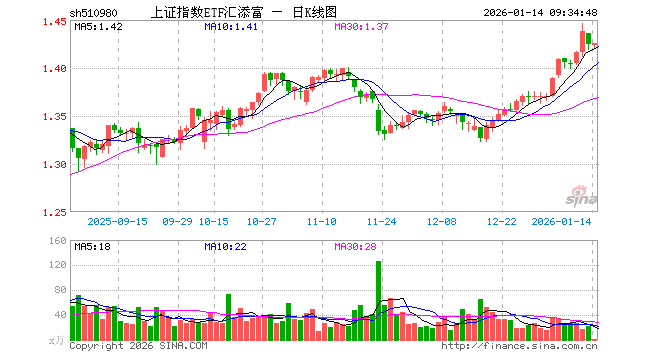1月14日,上证指数ETF汇添富(510980)开盘跌0.14%,报1.423元。上证指数ETF汇添富(510980)重仓股方面,农业银行开盘跌0.39%,贵州茅台涨0.00%,中国银行跌0.36%,中国石油涨0.60%,工业富联涨1.13%,招商银行涨0.00%,中国人寿跌0.53%,长江电力涨0.33%,寒武纪涨0.85%,中国神华涨0.24%。