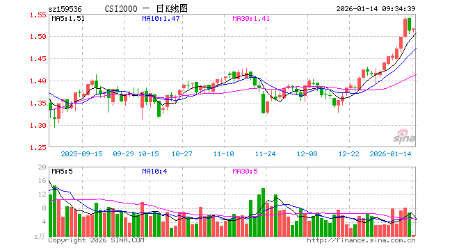 1月14日,中证2000ETF汇添富(159536)开盘涨0.07%,报1.513元。中证2000ETF汇添富(159536)重仓股方面,华胜天成开盘跌1.64%,沃尔德跌0.98%,永鼎股份跌2.16%,中邮科技跌1.28%,汉威科技跌0.19%,仕佳光子涨1.34%,国恩股份跌0.21%,普邦股份涨0.00%,龙泉股份涨0.00%,嘉元科技涨0.60%。