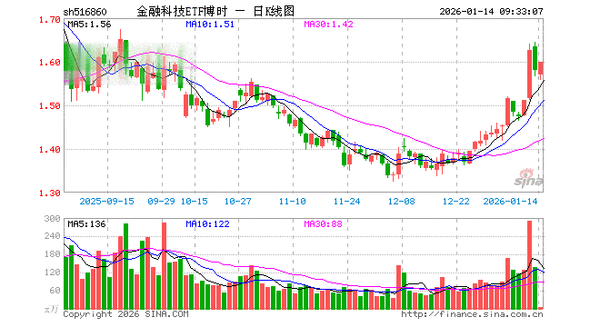 1月14日,金融科技ETF博时(516860)开盘跌0.63%,报1.570元。金融科技ETF博时(516860)重仓股方面,同花顺开盘跌1.86%,东方财富跌0.53%,指南针跌0.87%,恒生电子跌0.55%,润和软件涨0.96%,东华软件跌0.20%,银之杰跌0.24%,新大陆跌0.17%,广电运通涨0.74%,大智慧跌0.41%。
