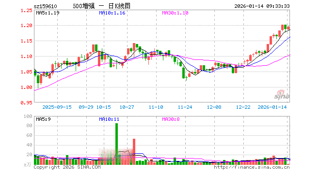 500ETF增强(159610)开盘跌0.08%,重仓股胜宏科技涨1.22%,先导智能跌0.09%