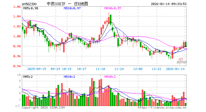 1月14日,中药50ETF(562390)开盘涨0.00%,报0.988元。中药50ETF(562390)重仓股方面,云南白药开盘跌0.05%,片仔癀涨0.01%,同仁堂跌0.19%,东阿阿胶跌0.04%,吉林敖东跌0.15%,华润三九涨0.00%,白云山跌0.16%,以岭药业跌0.34%,佐力药业跌0.18%,达仁堂涨0.15%。
