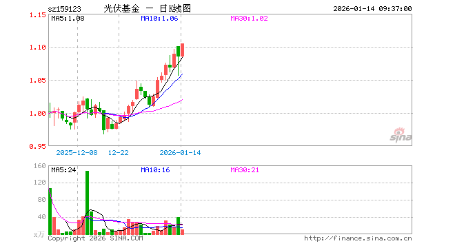 1月14日,光伏ETF嘉实(159123)开盘涨0.00%,报1.085元。光伏ETF嘉实(159123)重仓股方面,阳光电源开盘跌0.40%,特变电工涨3.40%,隆基绿能跌0.38%,TCL科技涨2.31%,通威股份涨0.98%,TCL中环跌0.91%,正泰电器涨0.00%,德业股份跌0.44%,晶澳科技跌0.51%,阿特斯涨0.12%。