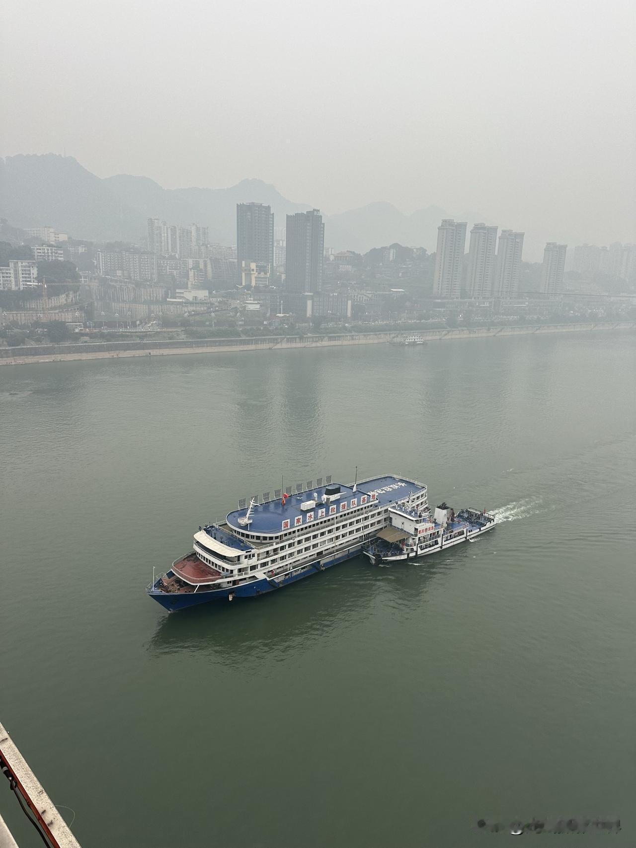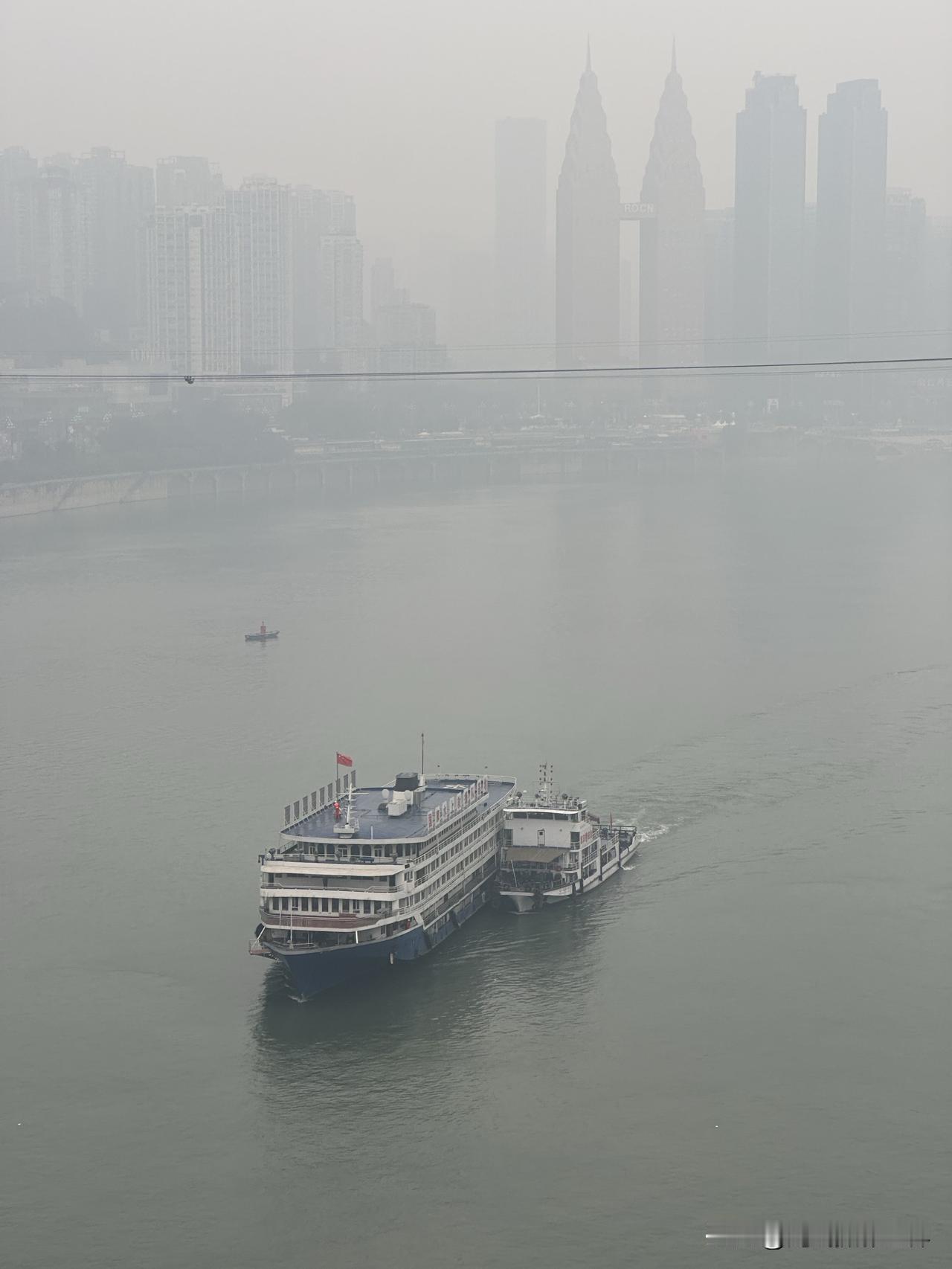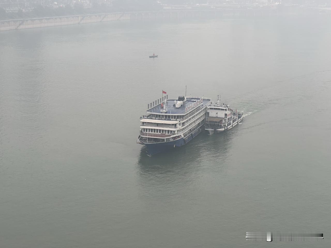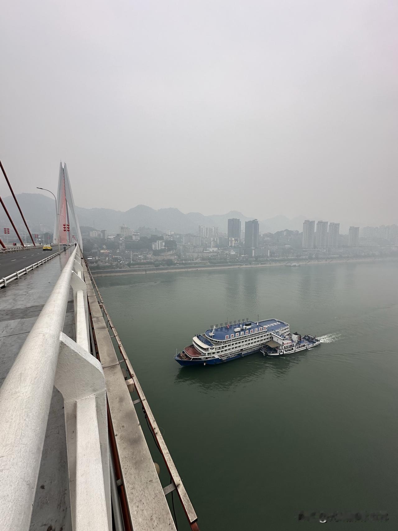 永别了!江渝号客轮!1月14日上午9点15分,重庆渝中半岛,承载着80后记忆的江渝号暨江山号游船,从太平门码头出发,被拖走拆解,彻底走向终点站啦! 40年,弹指一瞬间! 从此,江渝号,只留下传说! 小小的拖轮拖着江渝号,驶过湖广会馆江面时,恰好与长江索道相逢…… 只用了几分钟,江渝号就穿越了东水门大桥,永远消失在了我的视线之中! 永别了! 江渝轮!
