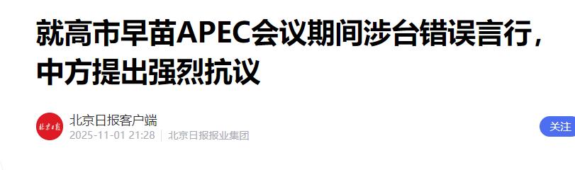 你们听说了吗?日本首相高市早苗上电视发飙了!她对着镜头大声说:“中国对日本的出口限制简直毫无道理,不符国际惯例,我们完全不能接受!” 看这气急败坏的样子,不少人会问:中国到底做了啥,能让她这么激动? 2025年11月7日,正是高市在国会,首次将台湾问题和日本的集体自卫权联系起来,暗示自卫队可能军事介入。 这直接挑战了中日四个政治文件的基础,动摇了互相尊重主权和领土完整的承诺。 然而,北京的回应远不止外交抗议。中国向联合国所有成员国递交文件,从国际法层面明确定义,若日本武力干涉台海,即构成侵略。 国际上的反应也很微妙,法国总统马克龙公开表示欧洲不应卷入台海,连日本最重要的盟友美国,其总统特朗普也打电话劝高市不要走得太远。 所以,高市在电视上抱怨经济制裁时,她是在用一个局部问题,掩盖自己率先在战略上越线的事实。 中国的反制也极其精准,1月8日启动的出口管制,条款明确指向“有助于提升日本军事实力”的物项,目标是日本的军工潜力,非普通贸易。 解放军的实弹演习和国防部“头破血流”的警告,则划出了军事底线。官方媒体的评论紧随其后,将高市的言行直接定性为“越线挑衅”,彻底堵死了日方想通过切割个人言行来蒙混过关的退路。 经济、外交、军事、舆论,中国的反制环环相扣,形成了一张巨大的压力网。 高市的强硬也并未在国内换来支持,她的支持率跌破三成,在野党要求她收回言论。执政联盟内部也出现裂痕,有人试图将责任推给高市个人,希望能为局势降温。 经济界的恐慌更加直接,高端制造业感受到了产业链断裂的寒意。前首相石破茂在电视上发问:问题并非打不打得过,而是日本能否活下去?这句话问到了许多日本精英的心坎里。 这场风波也让日本持续的军事扩张计划,彻底暴露在阳光下。巨额的钚材料储备、不断膨胀的防卫预算、深度参与AUKUS联盟演习,这些原本悄悄进行的动作,因高市的言论而变得刺眼,引起了国内和平力量的强烈警惕。 从挑衅言论到电视控诉,整件事的脉络清晰可见。这是一场由日方单方面破坏规则,并引发中方系统性应对的危机。 高市早苗政府现在必须做出选择,是继续走上那条充满不确定性的危险道路,还是回到尊重邻国核心利益的正轨?这个选择,将决定未来中日关系的走向。 信息来源:《就高市早苗APEC会议期间涉台错误言行,中方提出强烈抗议》,北京日报客户端,2025年11月1日。