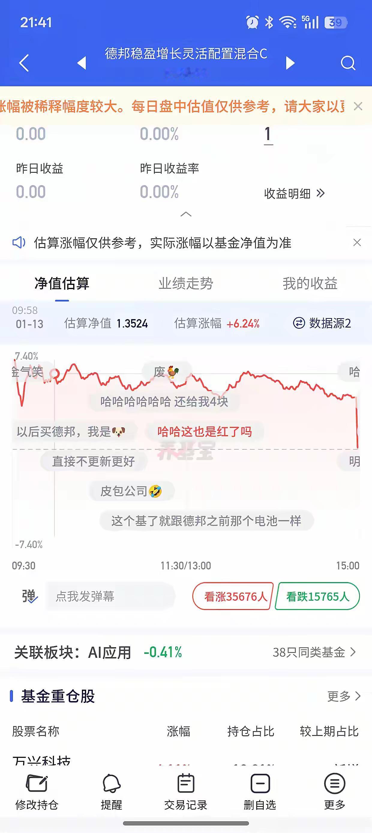 这也太扯了,估值4个点,最后更新变0.05 这是巨额资金买入,还没时间建仓,摊薄收益。短期还要被摊薄,一星期后可能恢复正常。不如买入其他基金。