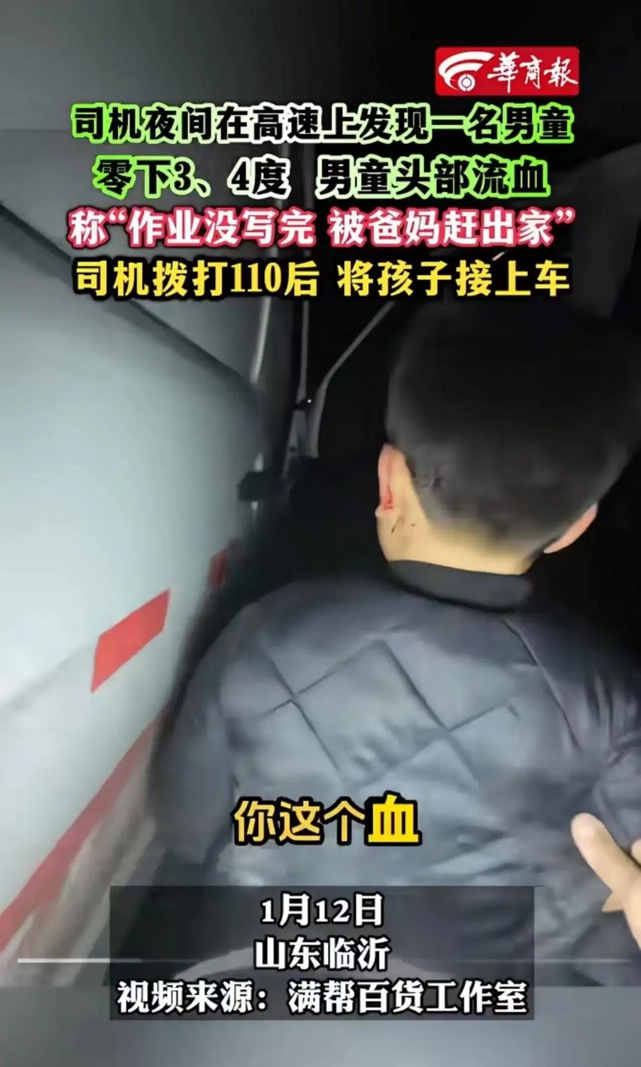 太惊险了!山东临沂高速上,一名男童竟在零下三四度的夜晚,头部流血独自徘徊,这究竟是怎么回事呢? 据司机描述,当时他正在高速上行驶,突然发现前方有一名男童,头部流血,神情慌张。司机立刻停车询问,男童哭诉称因为作业没写完,被爸妈赶出了家门。司机听后十分震惊,这么冷的天,孩子独自在外,万一出了啥意外,父母该多后悔啊!随后,司机迅速报警,并联系了孩子的父母。这一事件也引发了网友的广泛关注,大家纷纷表示,这孩子真是遇到好心人了,如果遇到坏人,后果简直不敢想象。有网友认为,父母教育孩子应该讲究方式方法,不能一味地打骂和赶出家门,这样不仅不能解决问题,还可能给孩子带来心理阴影。也有网友表示,虽然孩子作业没写完,但父母也不应该如此极端,应该耐心沟通,帮助孩子解决问题。 孩子是父母的心头肉,教育方式至关重要。希望这起事件能给广大家长敲响警钟,多关注孩子的内心需求。大家对此事怎么看呢?快来评论区留言讨论吧!男童致伤 河南男孩昏迷 男童遭道路