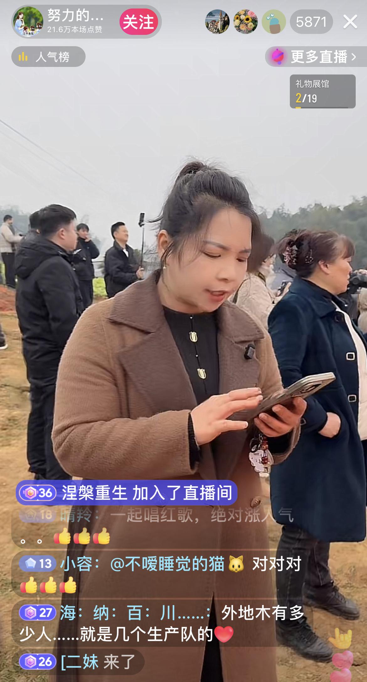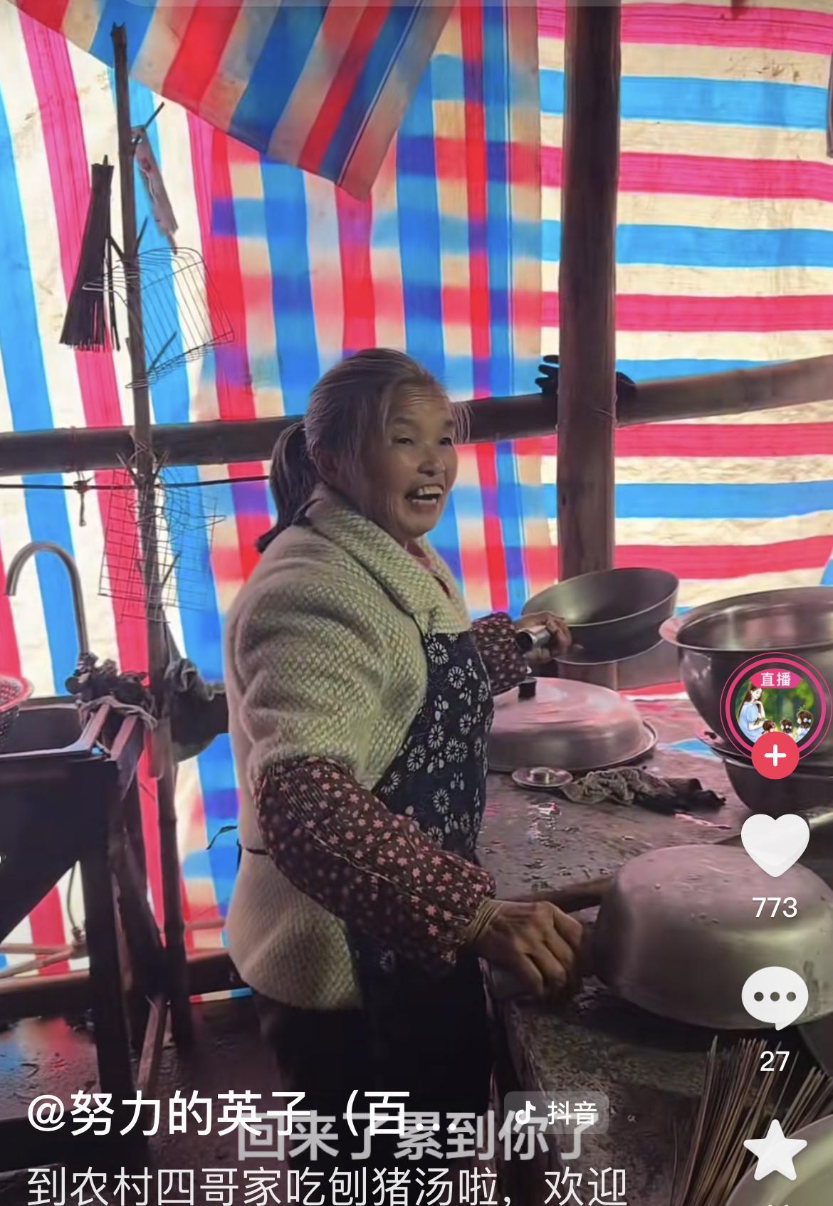 英子带着小叮当、助理回大旺吃刨猪汤,开直播,直播间人数近5000人! 早上,英子提着大包小包,带着小孩回大旺,到老家,王爸开心地抱起小叮当,回到临时搭建的棚子,王妈满脸笑容地招呼她们。 英子在刨猪汤现场开直播,直播间人很多,看来大家都喜欢看热闹。 网友们都很关心: 三娃子来没有 幺妈幺爸来没有 幺舅来没有 现场横幅拉着,红色的充气拱门,现场50多桌已经坐满了,还有人到处走来走去。 真是热闹得很!