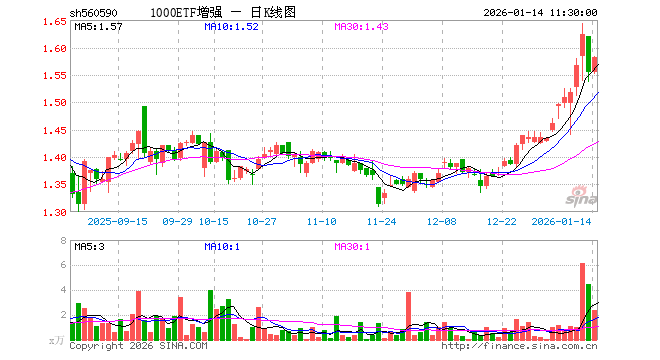 1000ETF增强(560590)业绩比较基准为中证1000指数收益率,管理人为鹏华基金管理有限公司,基金经理为寇斌权,成立(2023-09-01)以来回报为54.34%,近一个月回报为11.53%。