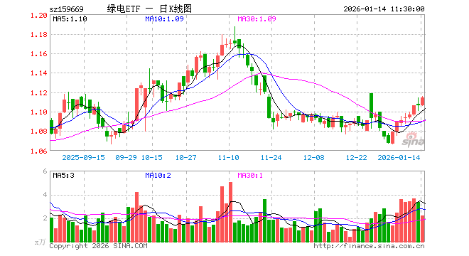 1月14日,截止午间收盘,绿电ETF(159669)涨0.72%,报1.114元,成交额246.33万元。绿电ETF(159669)重仓股方面,三峡能源截止午盘涨0.24%,中国核电涨0.22%,长江电力涨0.26%,国投电力涨0.07%,上海电力涨0.84%,中国广核涨0.52%,川投能源涨0.00%,国电电力跌0.20%,华能水电涨0.11%,华能国际涨0.13%。