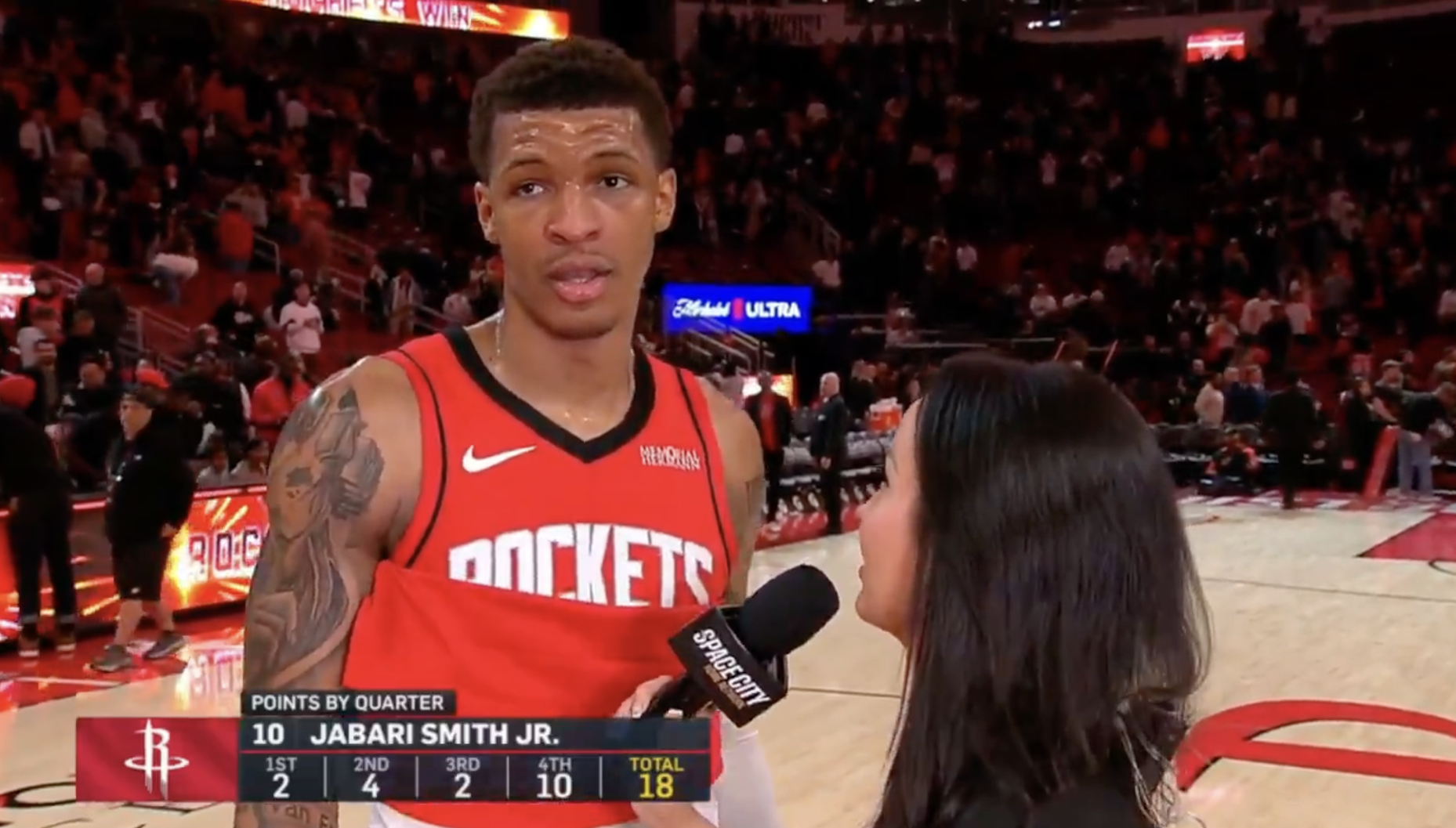 赛后火箭球员小贾巴里-史密斯接受了记者采访,谈到了末节表现,小贾巴里表示:“队友们始终信任我,一直把球传给我,所有人都告诉我保持信心。”