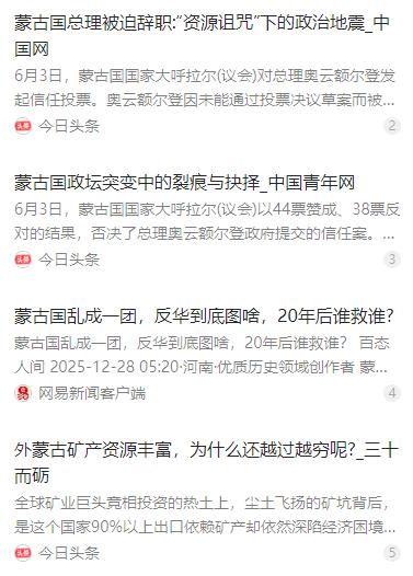 蒙古国乱成一团,反华到底图啥?蒙古国首都乌兰巴托的街头又闹起来了,这回依旧是熟悉的配方:民众的怒火烧向腐败的官员,但拨开这层骚乱的表象,你会发现一个更加拧巴的现实。 麻烦看官老爷们右上角点击一下“关注”,既方便您进行讨论和分享,又能给您带来更多优质的内容,感谢您的支持! 这场风波的导火索颇具戏剧性。2025 年 5 月,时任蒙古国总理奥云额尔登的准儿媳在社交平台高调炫富,名牌包、钻戒加直升机求婚的奢华场景,在民生艰难的当下瞬间点燃了民众的怒火。大家纷纷质疑这些财富的合法性,矛头直指身居高位的总理及其背后的特权阶层。 从 5 月 13 日开始,乌兰巴托市中心的抗议活动愈演愈烈,超过 10 万人签名要求彻查腐败,连续 21 天的广场集会与线上抗议联动,形成了声势浩大的民意浪潮。民众的诉求很直接:要求总理解释财产来源、主动辞职,彻底清算长期存在的权力寻租问题。 这场抗议最终以总理下台收场。6 月 3 日,蒙古国议会的信任投票中,44 票赞成、38 票反对的结果未能达到法定门槛,奥云额尔登被迫辞职,成立仅 10 个月的三党联合政府也随之垮台。看似一场 “炫富门” 引发的政治闹剧,实则是该国积怨已久的系统性矛盾的总爆发。 蒙古国的困境早就有迹可循。这个地广人稀的国家坐拥 80 多种矿产、6000 多个开采点,矿产出口占出口总额的 90% 以上,本该是名副其实的资源富国,却长期陷入 “财政穷国” 的怪圈。世界银行数据显示,该国最富有的 10% 人口掌握着超过 40% 的财富,而贫困率逼近 30%,贫富差距悬殊到令人咋舌。 问题的核心出在资源分配上。塔本陶勒盖煤矿这样的 “摇钱树” 矿权,长期被少数政治家族和精英集团把持,普通民众根本分不到一杯羹。2022 年震惊全国的该煤矿腐败案中,650 万吨煤炭凭空消失,涉案金额超 10 亿美元,牵扯出前总统、议员等大批高层,却没人真正为此负责。 资源红利被少数人吞噬,留下的却是一堆民生难题。2025 年蒙古国通胀率高达 19%,物价飞涨而工资停滞不前,青年失业率居高不下。连续两年的冬季雪灾冻死了数百万头牲畜,让依赖畜牧业的民众雪上加霜,大量农牧民被迫涌向城市,在乌兰巴托周边形成了成片的 “蒙古包贫民窟”。 公共服务的缺位更让民众失望。医疗、教育资源集中在少数城市核心区域,偏远地区的居民看病上学都要长途奔波。基础设施建设更是滞后,全国铁路稀缺,即便有丰富的矿产,也得靠卡车长途运输到中国边境,既增加成本又污染环境,资源优势根本转化不成发展优势。 国内矛盾解不开,部分政客和意见领袖就想出了 “转嫁危机” 的歪招 —— 把中国当成 “背锅侠”。他们刻意渲染反华叙事,将经济困境、民生难题都归咎于外部因素,试图用民族情绪掩盖自身治理的失败。 可现实情况是,中国早已是蒙古国离不开的合作伙伴。2024 年中蒙贸易额高达 186.2 亿美元,蒙古国对中国的出口占其出口总额的 91.3%,煤炭、铜矿等核心资源几乎全靠中国市场消化。甘其毛都 - 嘎舒苏海图铁路这样的合作项目,更是直接关系到其矿产运输的命脉。 反华叙事根本解决不了实际问题,反而会让普通民众遭殃。蒙古国没有完整的工业体系,日用品、能源供应大多依赖从中国进口,一旦双边关系紧张,首先受影响的就是物价和民生。之前有政客试图限制铜矿对华出口,结果导致项目成本暴涨、纠纷不断,最终得不偿失。 该国经济困境的根源,其实在于自身的结构性问题。工业体系缺失导致经济过度依赖矿产出口,国际矿价波动一有风吹草动,国内经济就跟着震荡;财政管理粗放,国有矿业企业负债累累,23 亿美元的总负债占 GDP 的 15%,却没给国库带来多少实际收益。 政治层面的内耗更是雪上加霜。多党制在这里变成了 “轮流割韭菜”,政党之间只顾权力争斗,政策朝令夕改。这次垮台的联合政府,三党表面合作实则各怀鬼胎,官位分配成了角力焦点,改革方案根本无法落地,政府会议开得像 “宫斗剧现场”。 更值得警惕的是外部势力的推波助澜。西方舆论和非政府组织一直把蒙古国塑造成 “夹在大国之间的受害者”,不断放大其对邻国的敌意,目的就是弱化其对自身制度问题的反思,让这个国家成为地缘博弈的棋子。 所谓的 “第三邻国政策”,本想平衡外交关系,却被玩成了 “远交近攻” 的冒险。蒙古国曾试图引入澳大利亚等国资本开发矿产,还设定条款禁止直接卖给中资企业,结果不仅没摆脱依赖,反而因运输成本飙升、合作纠纷不断,让项目陷入困境,错失了发展机遇。 其实明眼人都清楚,蒙古国的出路从来不在 “反华” 上。它的煤炭出口需要中国市场,能源供应需要中国保障,日用品流通依赖中国渠道,就连基础设施建设也离不开中国的合作。 关系稳定,才是其经济复苏、民生改善的前提。
