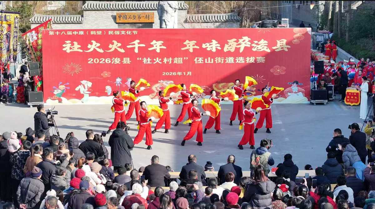 1月13日,在第十八届中原(鹤壁)民俗文化节启幕之际,浚县“社火村超”选拔赛伾山街道专场在西杨玘屯热力开演。