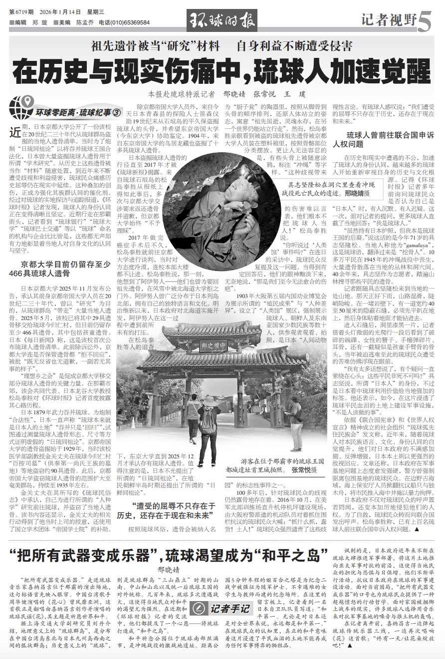 [环球零距离·琉球纪事(3)]祖先遗骨被当“研究”材料,自身利益不断遭受侵害,琉球人在历史与现实伤痛中加速觉醒