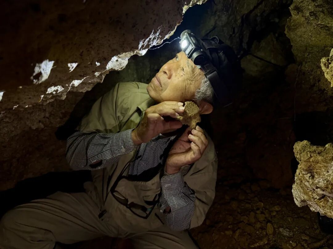 进入石缝后,洞里漆黑一片,记者借着头灯微弱的光爬行一段后看到了破碎的碗碟、女性的簪子、手榴弹碎片、耳骨,还有一截疑似是孩童手臂骨的骨头,当年被迫逃难至此的琉球民众遭受的苦难仿佛浮现在眼前。