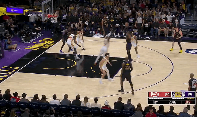 虎扑01月14日讯NBA常规赛,湖人对阵老鹰的比赛正在进行中。