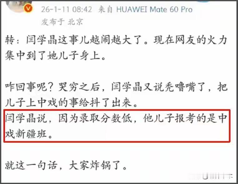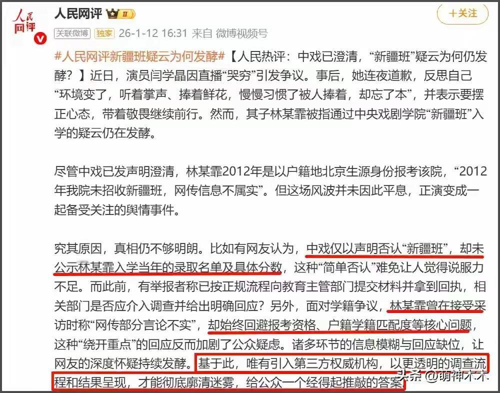 官媒发声了!闫学晶儿子入学涉及教育公平,呼吁第三方介入调查 舆论场犹如被投下一颗深水炸弹,瞬间激起千层浪。当“教育公平”这四个字与公众人物的家庭相遇,引发的不仅是讨论,更是一场关于社会信任的全民审视。 教育,在中国家庭的心中占据着何等神圣的位置!它不仅是知识的传递,更承载着无数普通家庭改变命运的期盼。每一个父母都渴望给孩子最好的起跑线,但这条起跑线是否应该因为身份差异而有所倾斜?这正是刺痛公众神经的核心所在。 官媒此次发声,释放了一个明确信号:教育公平的红线不容触碰。在阳光照不到的地方,任何可能的暗箱操作都必须接受检验。第三方介入调查的呼吁,体现的正是程序正义的重要性——真相需要公正的眼睛来审视,疑虑需要透明的过程来消解。 我们不禁要问:为什么这类事件总能引发如此强烈的共鸣?因为每个人心中都有一杆秤,衡量着这个社会的公平与正义。教育资源的分配,关系到社会流动的通道是否畅通,关系到“努力就有回报”的信念是否依然坚实。当公众人物涉及此类事件时,人们看到的不仅是某个家庭的得失,更是对整个教育系统公信力的审视。 然而,在情绪澎湃的讨论中,我们更需要理性思考。教育的本质是什么?是公平竞争的平台,是才华绽放的舞台,更是社会价值的体现。每一个孩子都应当在阳光下平等地争取机会,这是现代文明社会的基石。 此次事件也给我们带来启示:监督机制的完善永远在路上。公众的关注、媒体的追问、制度的约束,共同织就了一张维护教育公平的防护网。我们期待通过正当程序查清事实,更期待以此为契机,推动教育资源分配更加透明化、制度化。 教育公平之路,道阻且长。每一次公共讨论都是社会共识的凝聚,每一次监督都是制度完善的契机。让我们以理性守护公平,以信任期待真相,共同守望每一个孩子都能平等享有的教育蓝天。