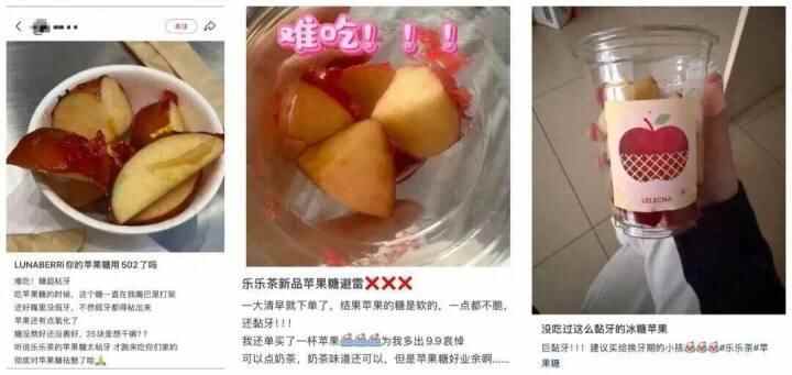 2025年12月19日,多位顾客反馈乐乐茶新品“苹果糖”存在粘牙等多个问题。次日,乐乐茶发布致歉声明称,第一时间全面核查了全国门店的苹果糖系列出品。不符合标准的产品已立即下架,相关门店已责令立即整改,并对出品严重不符的门店进行了严厉处罚。