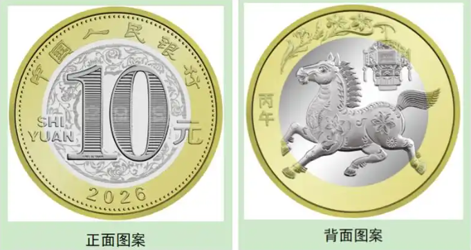 据悉,本次发行的2026年贺岁纪念币面额10元,材质为双色铜合金材质,发行数量1亿枚,正面为面额和年份,背面以剪纸风格马形象为主,辅以花灯和萱草图案,币面左侧刊“丙午”字样。2026年贺岁纪念钞面额20元,发行量1亿张,正面为马造型主景,背面描绘儿童欢庆锣鼓场景,同时融合传统装饰和多民族文字元素。每人预约、兑换限额均为20张/枚。在四川,纪念钞/币由中国工商银行、中国农业银行两家银行共同承担预约兑换工作。