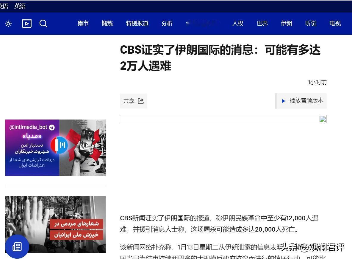 为了对付人民,伊朗军队战备水平比对付以色列时还要高;对以色列的袭击只造成几个人死