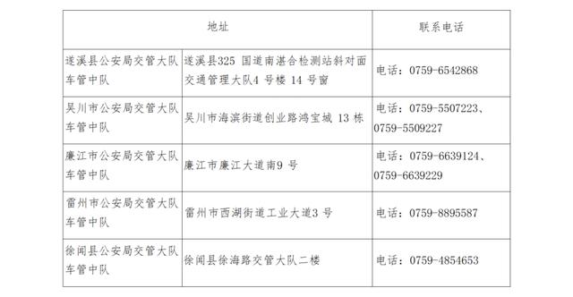 附:登记上牌点及服务信息