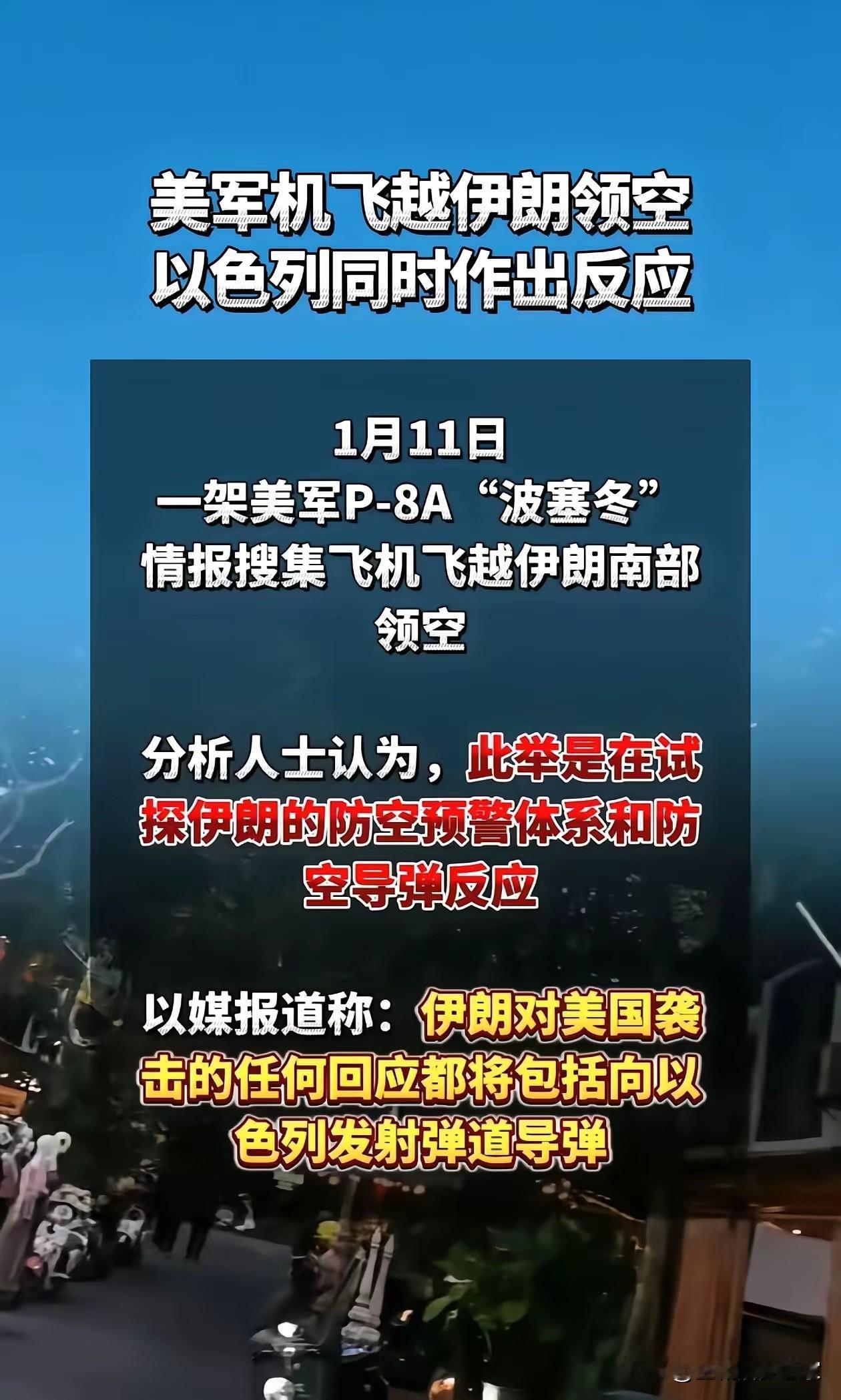 美以步步紧逼,伊朗局势剑拔弩张! 美以联手动作不断,伊朗正面临前所未有的压力,中东火药桶又要被点燃? 1月11日,美军P-8A“波塞冬”侦察机直接飞越伊朗南部领空,明摆着是试探伊朗的防空体系;另一边特朗普还在考虑对伊朗发动军事打击,以色列也跟着叫嚣要做好应对准备。 更离谱的是德国总理梅尔茨直接放话,称伊朗政权“只剩最后几天几周”,西方阵营的敌意简直写在脸上。连法国都撤了驻伊使馆非必要人员,美国更是要求公民立刻离开伊朗,这一系列操作,明眼人都能看出西方在为可能的冲突铺路。 但伊朗也没怂,直接警告若遭攻击必将还击,还放话回应美国的话会把弹道导弹对准以色列。一边是美以的军事威慑和舆论造势,一边是伊朗的强硬反击,这场对峙到底会走向何方? 伊朗局势 美伊关系 中东局势 互动:你觉得美以最终会对伊朗动手吗?评论区说说你的看法!