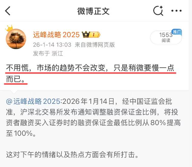 下午盘前突发的消息,沪深北交易所发布通知调整融资保证金比例,将投资者融资买入证券时的融资保证金最低比例从80%提高至100%。由此引发开盘后五大指数同时跳水。 对于这种突发的消息,我的看法就是图片上的看法,这么一则消息会影响短期的涨跌,但不会改变大型的上升趋势。