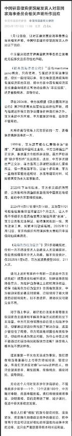 中国使馆愤怒发声:已保持最大限度忍耐!当地时间1月12日,菲律宾国家海事委员会发表声明,再次就南海问题对华发难,指责中方在相关海域的“非法巡航”。中国驻菲律宾使馆则在13日发声,予以严正驳斥,字里行间都是掩饰不住的愤怒。 声明以详实的时间线和事实依据,系统揭露了菲方长期以来在南海问题上“混淆概念、误导舆论、挑衅滋事、破坏现状”的一系列行为,中方的所有应对措施,都是为了维护自身主权和权益被迫采取的,而且已经保持了最大限度的忍耐和克制,如果不是这样,状况可能早就不同了。 先说法理层面的"文字游戏"。菲方最爱提的"海洋区域"(maritime zone),在《联合国海洋法公约》里根本找不到依据。 他们故意把专属经济区和领海混为一谈,把中方在中菲主张重叠海域的正常巡逻,说成是"入侵"。 可稍微懂点国际法的人都知道,领海是主权范围,专属经济区是管辖权争议。 早在2006年,中国就按公约第298条声明,排除了海域划界争议的仲裁程序,菲方2016年单方面搞的所谓"南海仲裁",从一开始就是废纸一张。 但他们偏要拿着这张废纸当令箭,本质是想用法律外衣掩盖非法侵占的事实。 时间线拉到1999年,菲律宾军舰非法"坐滩"仁爱礁,一停就是27年。中方当年就要求拖走,菲方次次承诺"修好了就走",却年年往破船上运钢筋水泥。 2023年他们变本加厉,组织海警船、公务船带"渔船"冲黄岩岛领海,2024年派海警船在仙宾礁赖着不走近五个月,2025年上半年光铁线礁就登岛30次211人次。 最恶劣的是2025年12月12日,菲方纠集几十艘船冲仙宾礁潟湖,所谓"渔民"挥着20公分长刀挑衅,海警船就在附近送燃料——这哪里是打渔?分明是有组织的军事碰瓷。 中方的克制,在每一次现场处置中都看得见。面对菲方船只恶意转向、水炮滋扰,海警始终用喊话、驱离的"最低限度手段"。 要是换个国家,面对军舰坐滩27年、武装渔民持刀威胁,早就不是今天这个局面。 使馆声明里那句"如不是这样,现场状况可能完全不同",藏着多少没说出口的隐忍。 2023年黄岩岛对峙,菲方船只被水炮驱赶,国内舆论炒成"中国欺凌小国",却没人提他们先派船闯领海;2025年仙宾礁事件,菲媒拍"渔民受伤"的画面,却剪掉了他们持刀袭警的镜头。 这种选择性叙事,恰恰暴露了菲方的心虚。 更值得警惕的是菲方的"代理人战术"。他们把渔民编成"海上民兵",发武器、给补给,推到一线当肉盾。 2023年菲军方公开的"武装渔民"计划,2025年仙宾礁现场的协同配合,都说明这些所谓"渔民"根本不是普通百姓。 菲海岸警卫队发言人塔里埃拉一边给侵权找借口,一边炒作"中国威胁",这种贼喊捉贼的戏码,本质是配合域外势力搞"认知战"。 用小船碰瓷大国军舰,塑造"弱者对抗强权"的悲情形象,误导国际舆论。 但谎言终究抵不过事实。菲律宾国内也有清醒声音,前外交官帕格利纳万痛批"海洋区域法"把国家推向冲突边缘,指出马科斯政府让军方主导外交,只会沦为域外势力的棋子。 这话戳中了要害:菲方近年的激进政策,背后是美国"印太战略"的影子。他们以为抱上大腿就能讹诈中国,却忘了南海是中菲共同的家门口。 2000年中越划界、近年中马共同开发,这些成功案例证明,争议完全可以通过谈判解决。 为什么中菲谈不拢?因为有人根本不想谈——他们需要持续的紧张来刷存在感,需要域外势力的"保护"来维持国内支持。 中国使馆的愤怒,说到底是对和平的珍视。我们比谁都清楚,南海稳定对两国发展有多重要。 2025年中菲贸易额突破600亿美元,广西的榴莲、福建的电子元件,每天都在海上流动。但主权问题没有讨价还价的余地,当菲方把中方的忍耐当成软弱,当他们用"维权"包装侵略,就别怪我们亮明底线。 "随时奉陪到底"不是狠话,而是一个主权国家的必然选择——朋友来了有好酒,豺狼来了有猎枪,这道理,从来都没变过。 现在的关键,在于菲方能否认清现实:南海的和平,靠的是对话不是对抗,靠的是诚意不是表演。 中国始终敞开谈判的大门,但绝不容忍任何形式的侵权。那些把菲律宾推向地缘博弈前线的人,终将被历史证明是民族的罪人。 而中国,会继续守着这片祖宗海,用最大的耐心等待理性回归,也用足够的决心捍卫主权尊严。 这,就是使馆声明里愤怒背后的真相。