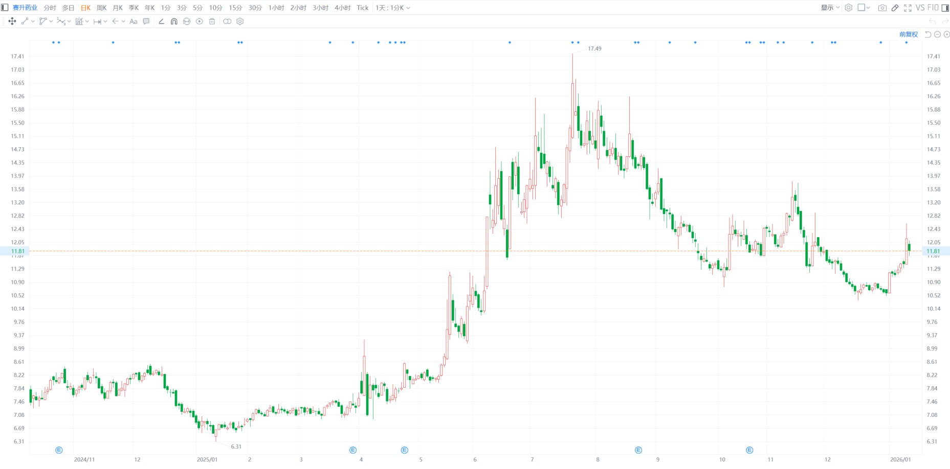 赛升药业(300485.SZ)午后跌幅扩大,一度跌4.11%至11.66元。赛升药业昨日晚间公布,股东马丽女士于2025年11月18日至2026年1月13日期间以集中竞价交易、大宗交易方式累计减持公司股份332.82万股,占公司总股本的0.69%。(格隆汇)