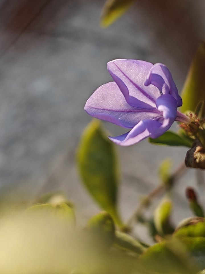 自家的小花园在一月里显得生机盎然,平时里赏着、陪伴着着实有一番乐趣,冬日傍晚的阳光暖暖,斜斜地折射在角落的蓝雪花花瓣上。