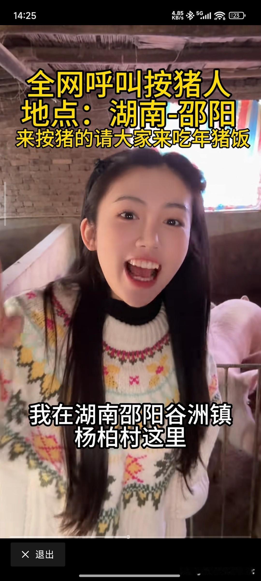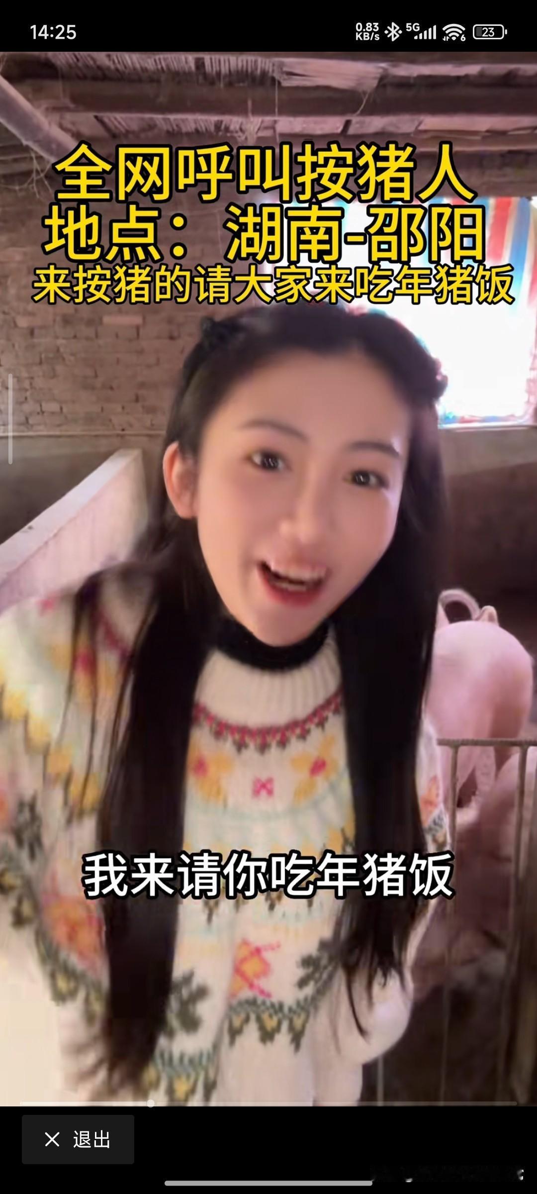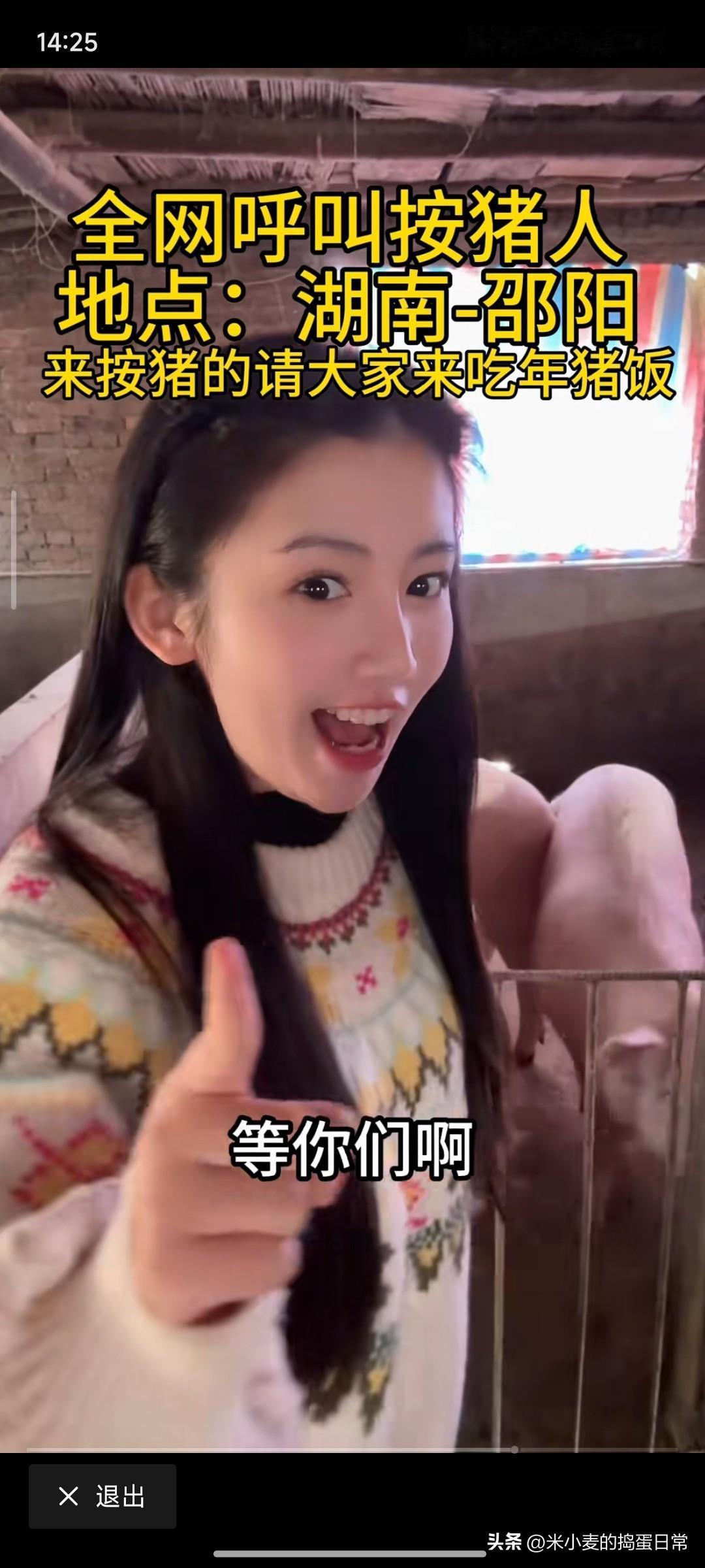 美女全网喊人按猪!管吃年猪饭,我先冲了 湖南邵阳的这位美女也太豪爽了!在谷洲镇杨柏村对着镜头全网呼叫“按猪人”,直言来帮忙按猪就请吃年猪饭,画面里她笑容甜美的样子,瞬间勾得网友心痒痒,评论区全是“马上出发”“组队去帮忙”的呼声。 我已经收拾好东西准备动身了,毕竟既能体验农村杀年猪的乐趣,又能蹭到香喷喷的年猪饭,还能偶遇这么漂亮的小姐姐,这种好事可遇不可求,去晚了怕是连猪尾巴都摸不着。