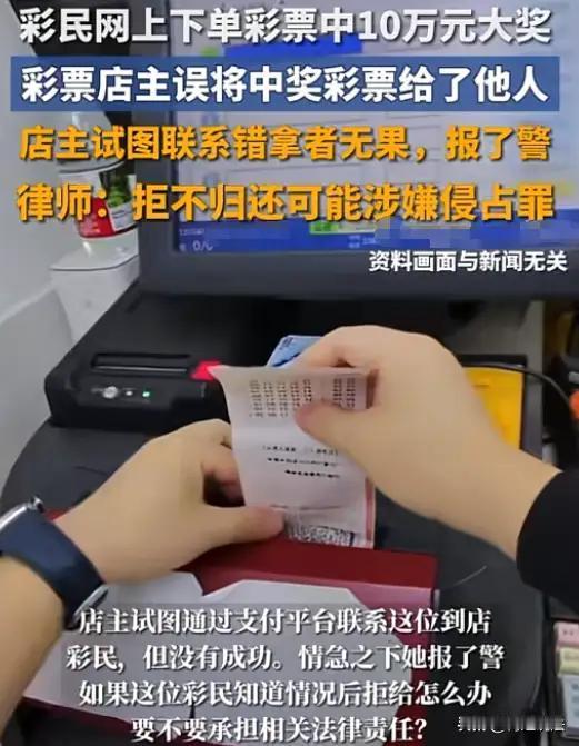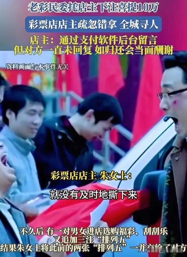**20元买彩票,中了10万,却差点因为一张“没撕下的纸”打了水漂。** 江苏扬州,男子线上下单,花20元在朱女士的彩票店买了两注“排列五”。 朱女士打印出票,忙中出错——**忘了撕下,也没拍照发给顾客确认**。 几分钟后,另一名顾客进店,她顺手把那张未标记的彩票递了出去。 谁也没想到:这张彩票,中了10万元大奖。 当男子兴冲冲来兑奖,朱女士翻遍抽屉都找不到对应号码。 调取监控一看,心凉了半截:**自己的失误,让别人的幸运变成了灾难现场。** 但她没推责,没耍赖,更没说“彩票不挂失概不负责”。 而是当场掏出10万元现金,先垫付给了男子。 她说:“是你中的奖,我就得认。” 可更难的事还在后面: 她联系不上那位误拿彩票的顾客,报警求助。 警方介入调查,全城寻人——不是为了抓罪犯,而是为了一张本不该丢失的纸,找回一个普通人该有的公平。 这件事最戳人心的地方是: **没有法律强制她赔,但她选择了扛。** 在中国,每年有无数因“出票未确认”引发的纠纷,多数以“顾客自担风险”收场。 而朱女士,用自己10万块的积蓄,守住了一个小生意人的良心底线。 我们痛惜她的损失,也敬佩她的担当。 但更该问一句: 为什么总要靠个人的善良,去弥补流程的漏洞? 如果平台有自动出票确认机制, 如果店铺有规范的操作提醒, 这场误会,本可以避免。 她赔得起10万,但良心赔不起 小人物的光,照亮了规则的暗角 150爆款文案