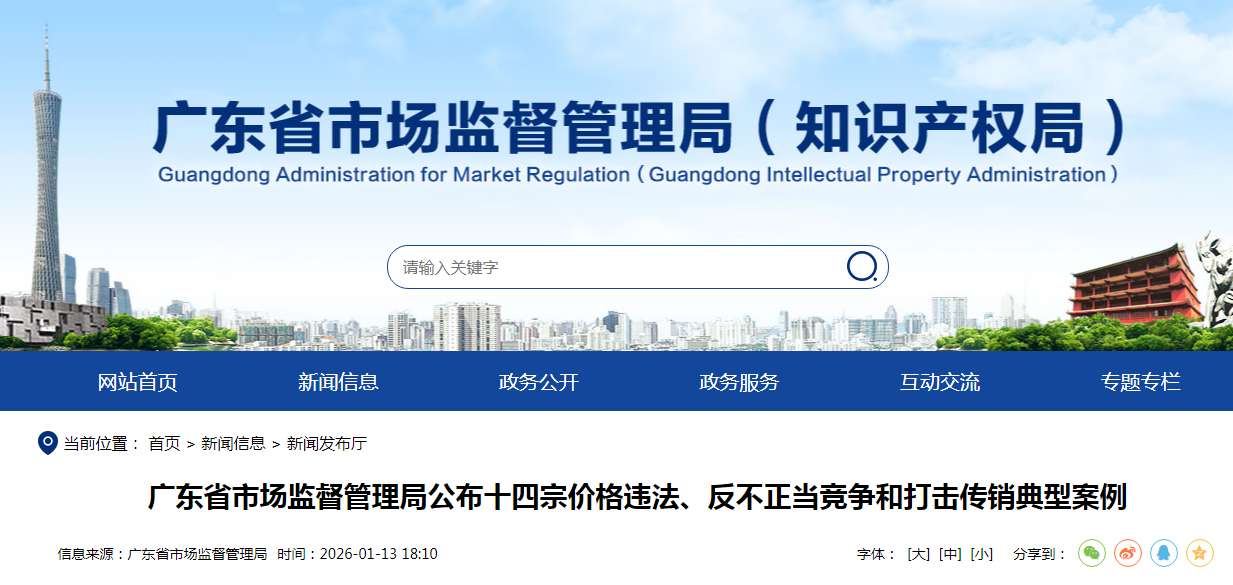 广东省市场监督管理局公布十四宗价格违法、反不正当竞争和打击传销典型案例