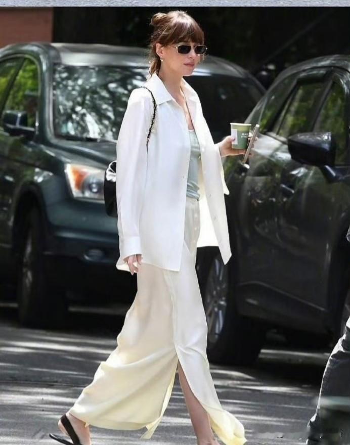 达妹真是把“不费力时髦”玩明白了🤩 她穿搭看着简单——白衬衫、牛仔裤、针织裙,