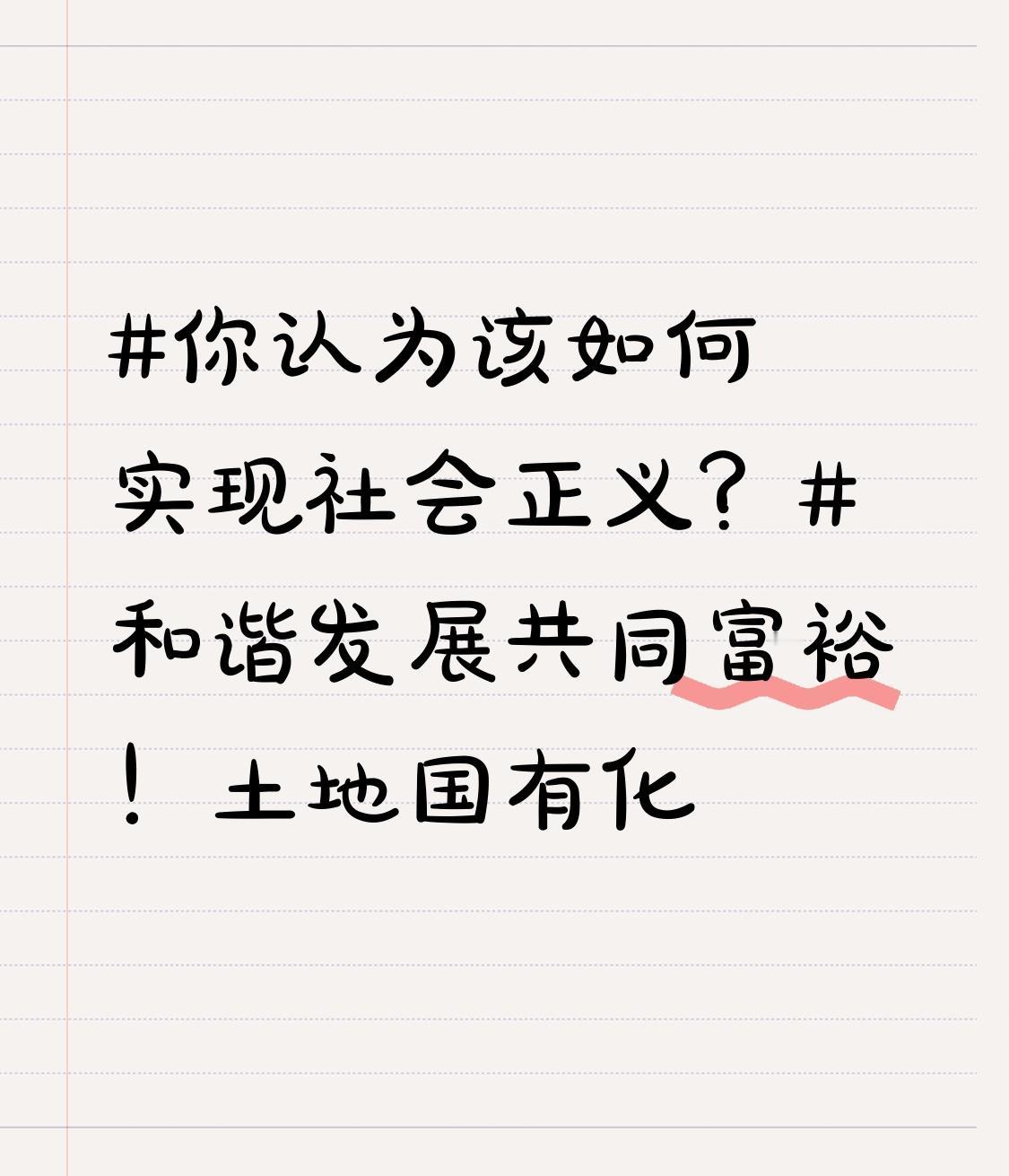 要实现社会正义、达成和谐发展共同富裕,土地国有化是重要一步。土地国有化能避免土地资源被少数人垄断,让土地更好地服务大众。 在经济上,要坚持以公有制为主体,多种所有制经济共同发展,完善按劳分配为主体、多种分配方式并存的分配制度,注重公平和效率的平衡。比如在分配社会资源和发展成果时,要让全体人民共享。 政治上,坚持党的领导,完善人民代表大会制度,依法治国,发展民主,维护公平正义。文化方面,发展先进文化,实施科教兴国和人才强国战略,提高全民素质。只有多方面协同推进,才能实现社会正义与共同富裕。
