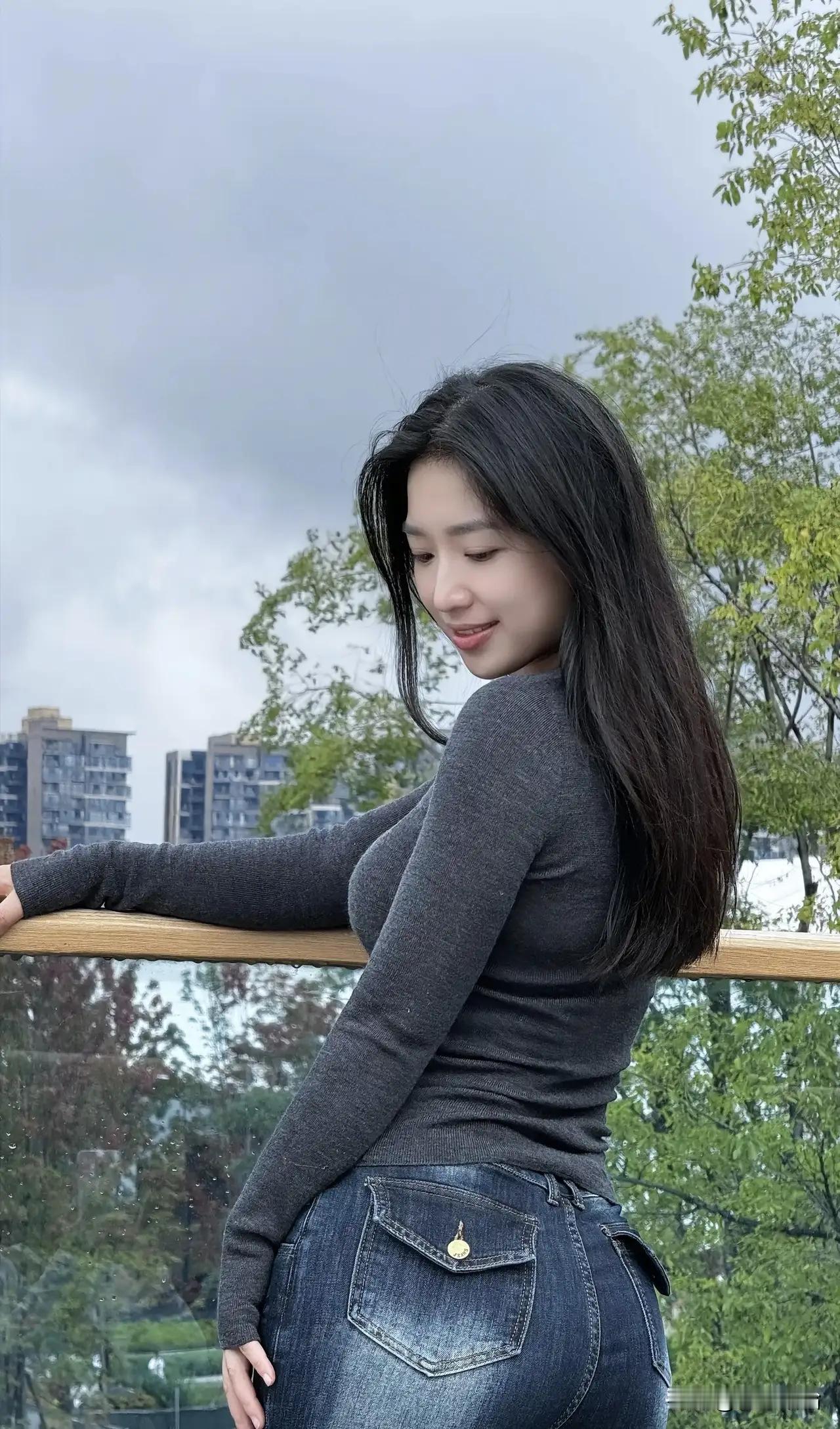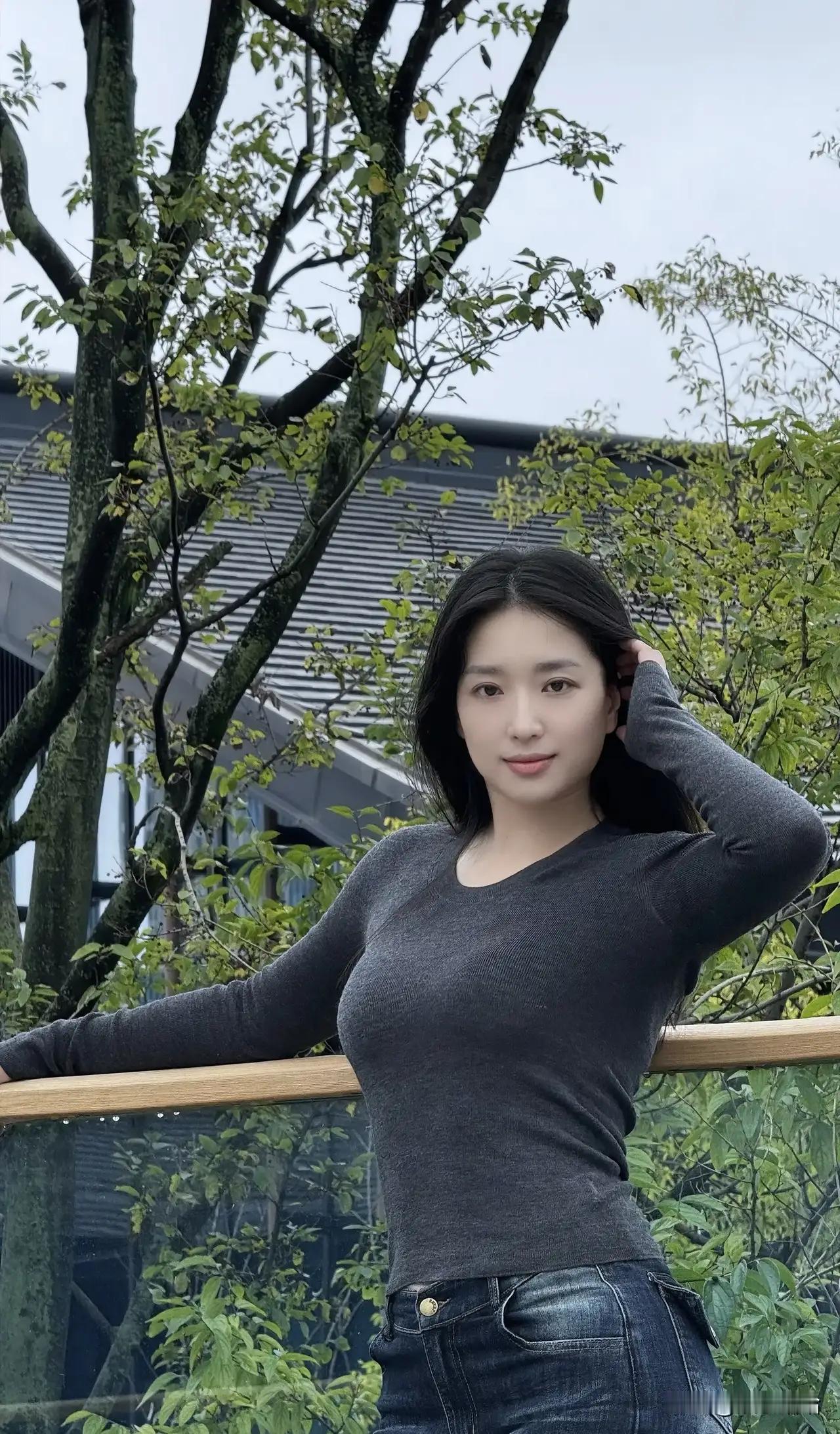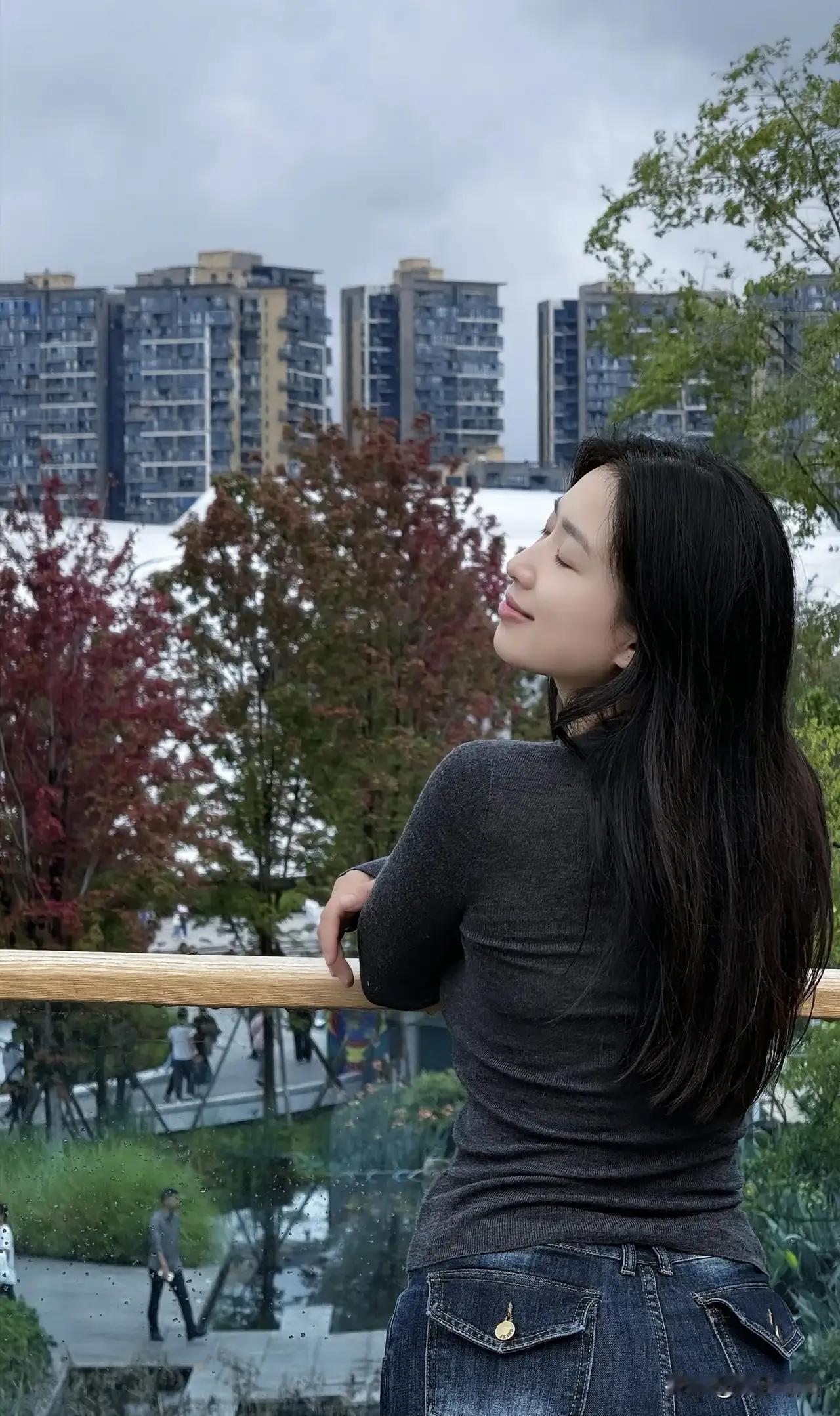 绿树掩映中,佳人倚栏笑。