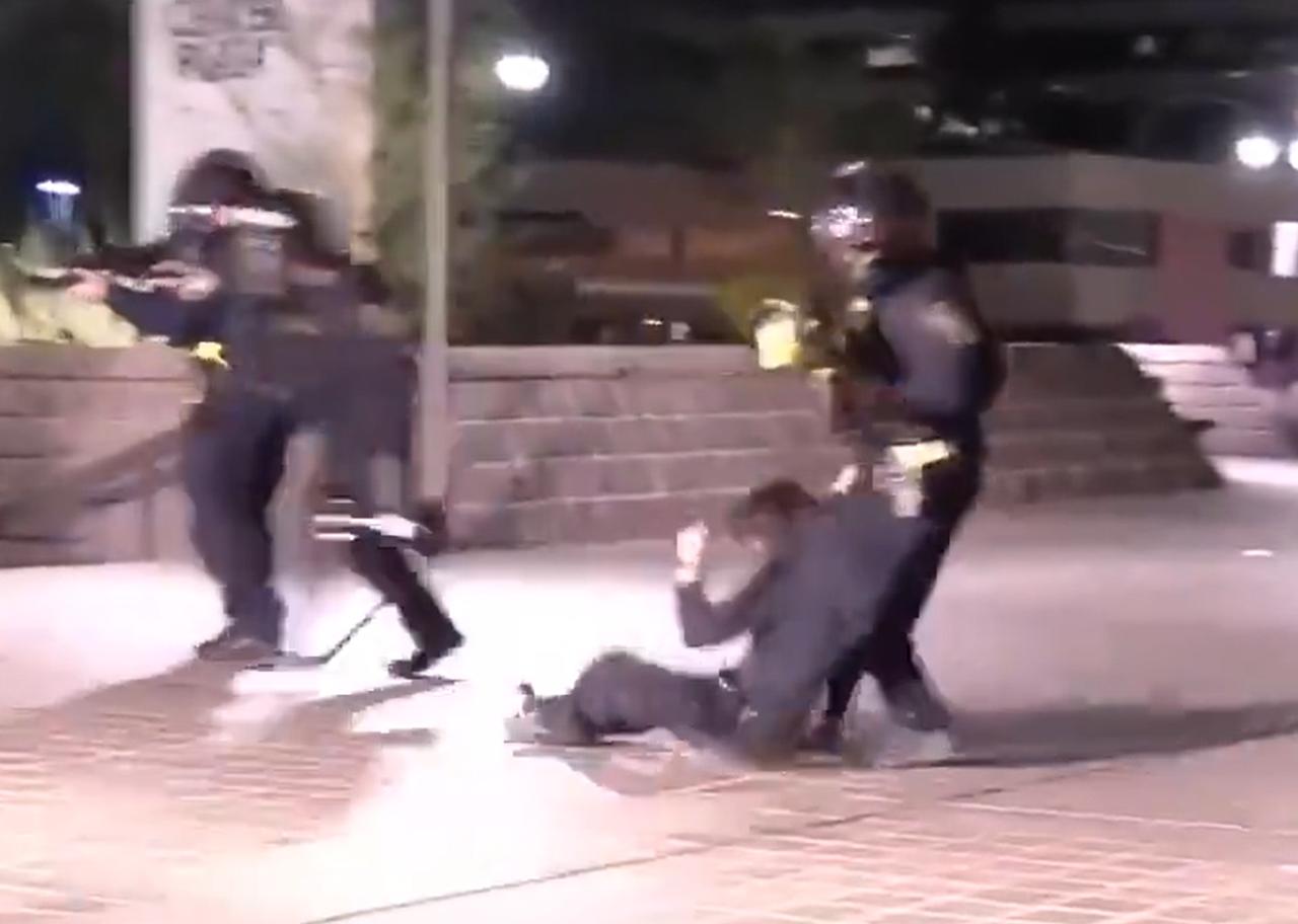 世界名画! 西方媒体怎么集体噤声了? 美国国土安全部探员,对一名21岁的抗议者,近距离发射橡皮子弹,导致后者左眼永久失明。 不知道,如果是西方媒体报道的话,会怎么形容这个画面? 是该探员,为了救受伤的民众,奋不顾身,甚至自己都摔倒了,总算救出了该名通报,否则后者很可能会因失血过多而身亡? 不排除西方媒体会这样编故事。