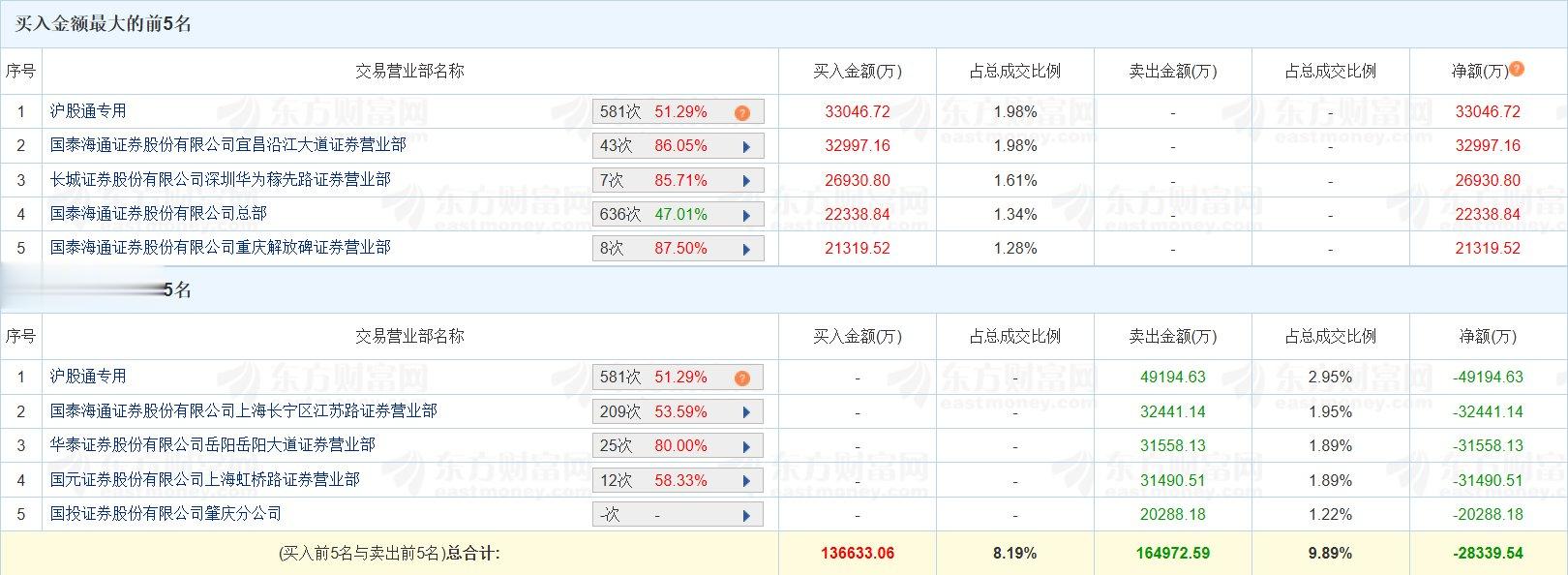 烽火通信(600498.SH)今日涨7.99%创历史新高,换手率28.44%,成交额166.78亿元。龙虎榜数据显示,沪股通买入3.3亿元,卖出4.92亿元,净卖出1.62亿元;游资“消闲派”位列买二席位,买入3.3亿元;“量化基金”位列买四席位,买入2.23亿元;“徐晓”位列卖四席位,卖出3.15亿元。上榜席位全天买入13.66亿元,卖出16.5亿元,合计净卖出2.83亿元。(格隆汇)