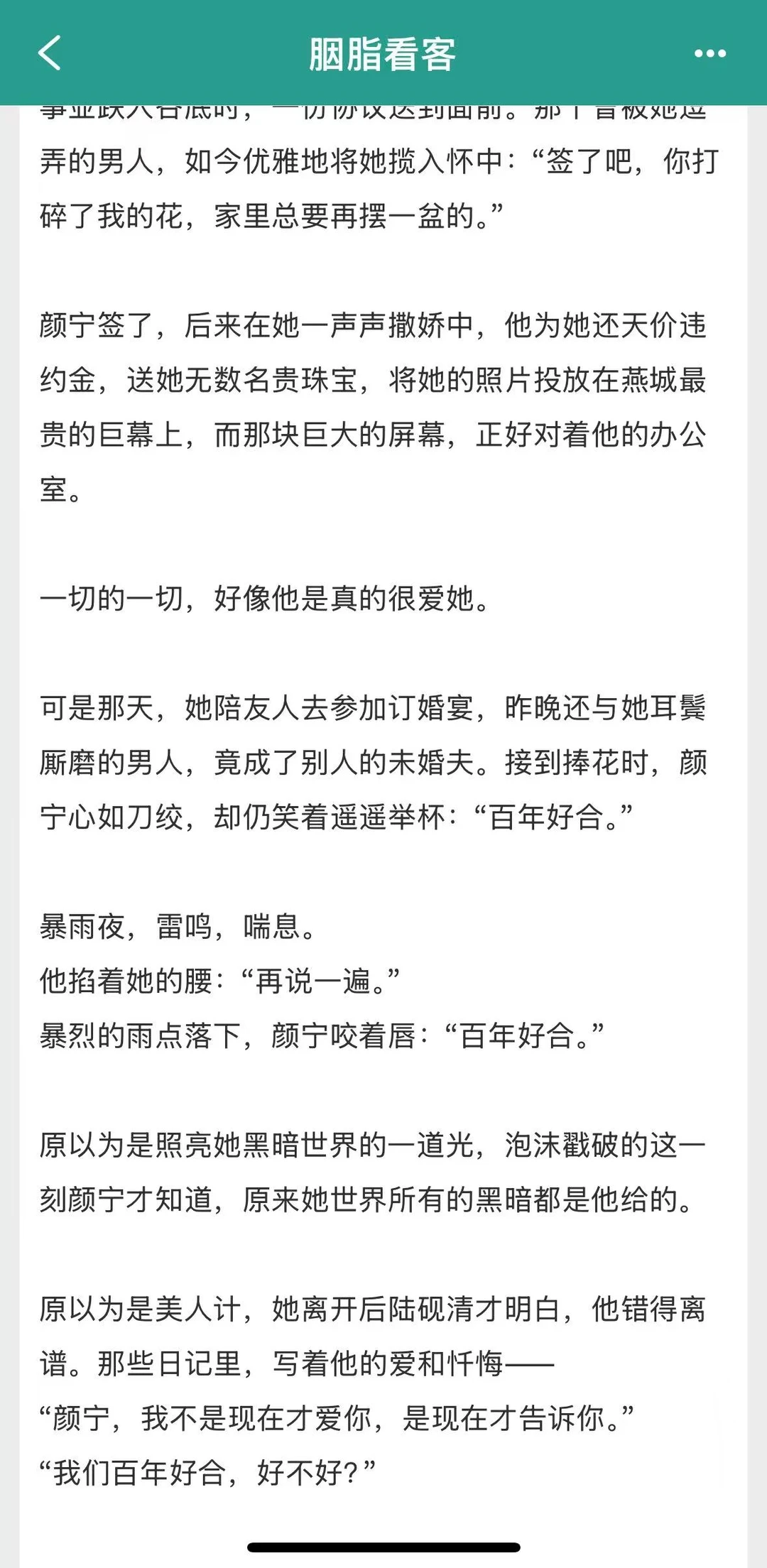 [彩虹R]《胭脂看客》by孟宋 [彩虹R]野心勃勃女明星 x 腹黑深沉豪门掌权人 [彩虹R]现言/熟男熟女/女撩男/娱乐圈/豪门世家 [种草R]作者大大写得非常有张力,将故事聚焦在娱乐圈和豪门圈两个光鲜亮丽但又阴暗十足的圈子中,野心勃勃的女明星碰上腹黑深沉的豪门掌权人,不仅是情感的碰撞,还有各自的成长。