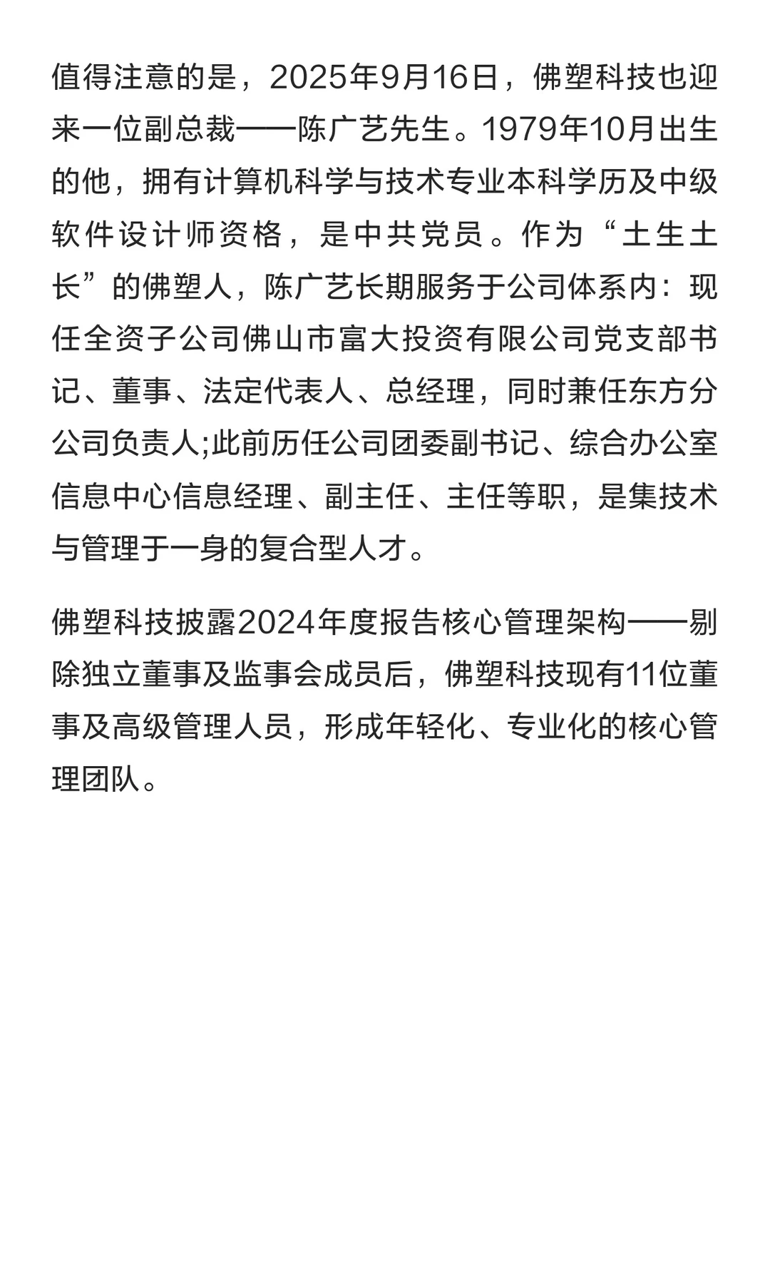 佛山塑料大厂管理层再添新锐!“85后”副总