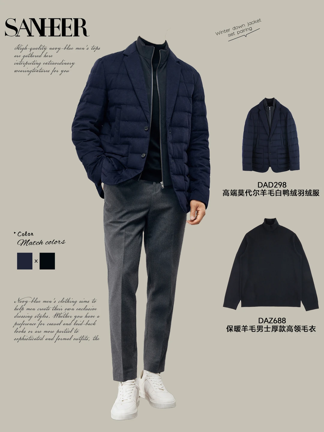 ▪️深蓝外套 + 黑内搭 + 灰裤:叠穿层次感(外套 + 内搭),简约不简单,随手搭都赢麻了